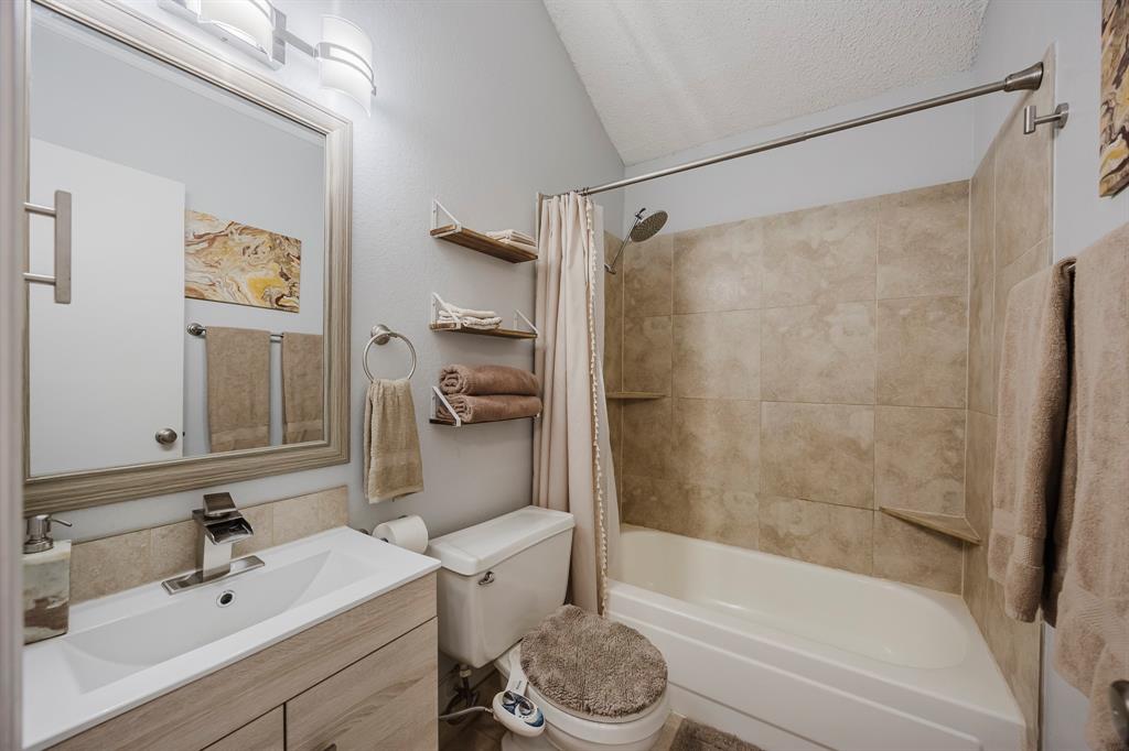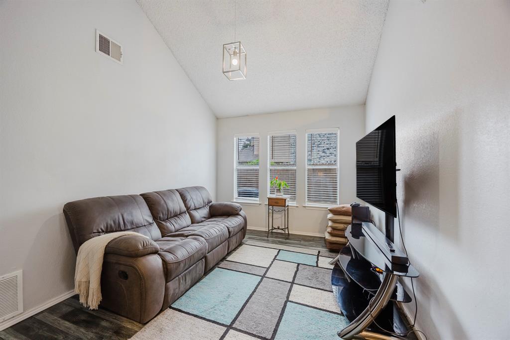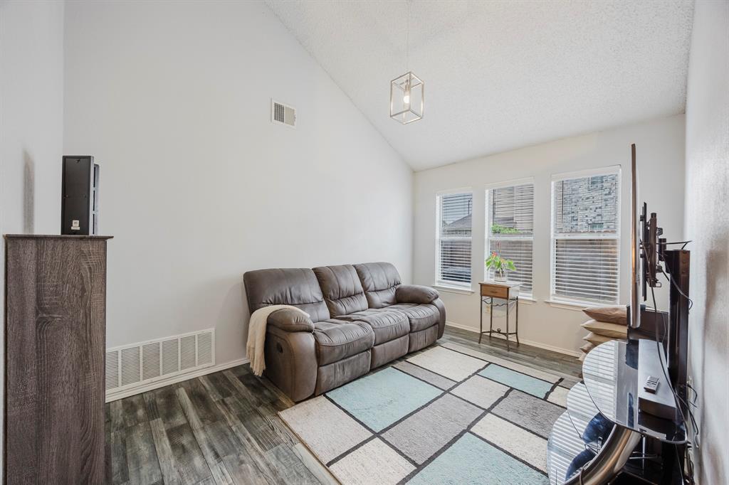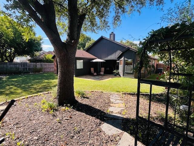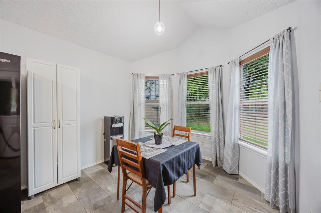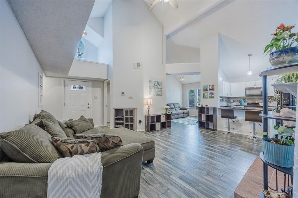 Fresh, light-filled home bursting with healthy, vibrant established outdoor landscaping. Well maintained one level 3BD, 2BA home with updated flooring and lighting throughout located close to many shopping, dining and entertainment options. Open floor plan with a charming brick wood-burning fireplace situated as a focal point in the center of the vaulted living room. Owner suite located on the rear of the home with a split floor plan for the other two bedrooms. Beautiful granite countertops updated in the well appointed kitchen as well as the bathrooms. Additional flex space can be utilized to fit your needs. Step out back to the peaceful and serene backyard. Featuring flagstone patio, mature trees and garden beds. This home is in great condition with blinds and curtain rods throughout and simply turn key ready. It's just waiting for you to make it your own! Newer HVAC with heat pump for cost savings in electricity.