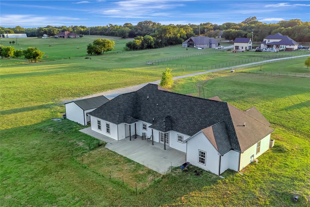 10.127 Acres with an AG EXEMPTION!! Experience serene country living in this beautifully designed custom home, located in the highly sought-after Gunter ISD. Nestled on over 10 acres, this 4-bedroom, 2-bath residence boasts an open-concept floor plan with nail-down hardwood floors throughout the main living areas and a cozy fireplace that adds warmth and charm.