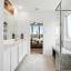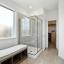 The kitchen offers a modern touch with cool gray cabinets, white subway tile backsplash, an oversized quartz island, and gas stove—a dream layout for any home chef. You’ll love the soft-close cabinets, added hardware, and thoughtful automatic pantry lighting. There’s even space and plumbing in the main walk-in shower for a future tub installation.