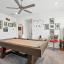 Inside, you’ll find a rare floorplan with 4 lower-level bedrooms, 2 full baths and 2 half baths, and a private game room upstairs which can also be used as a theatre or playroom. The open living space is flooded with natural light from 9 large windows and features luxury vinyl plank flooring, 12-foot ceilings, and recessed lighting throughout for a bright and airy feel. The main bedroom spacious with a green accent wall and 3 large windows bringing in lots of light. The main bath is spacious with a generous walk-in closet and plumbing and space for your dream soaking tub!