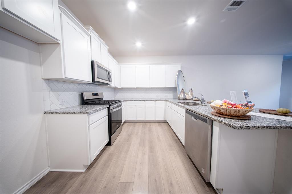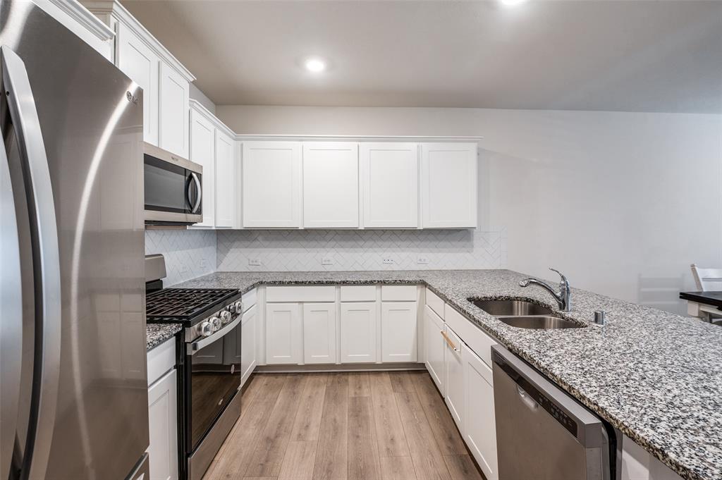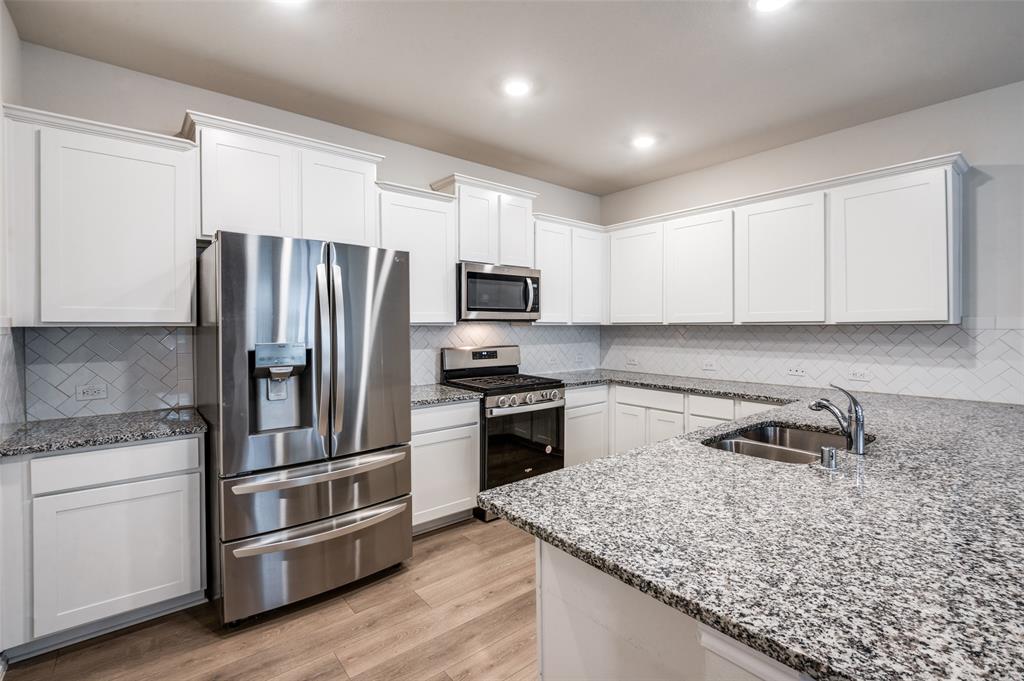 Celina offers the perfect balance of small-town charm and big opportunity. It’s a community that’s rapidly growing—and thriving. Located in a boutique, family-friendly community, this well-designed 4-bedroom, 3-bath home offers a smart layout and stylish upgrades—perfect for growing families or multi-generational living. Enjoy two bedrooms and two full baths on the main floor, including a flexible second bedroom ideal as a home office or guest suite, plus two bedrooms upstairs for added space and privacy. The open-concept design features a bright and spacious living area centered around a cozy fireplace, flowing effortlessly into the kitchen. The kitchen includes granite countertops, subway backsplash, gas cooktop, walk-in pantry and abundant counter space. Thoughtful touches like blinds, accent walls, and cabinets throughout in both the laundry room and garage enhance functionality and storage. Enjoy outdoor living on the covered back patio, set on a quiet interior lot. This home also includes foundation and roof shingle warranties still in place, providing added peace of mind. Minutes from the Dallas North Tollway, easy access to top-rated schools, restaurants, and shopping.