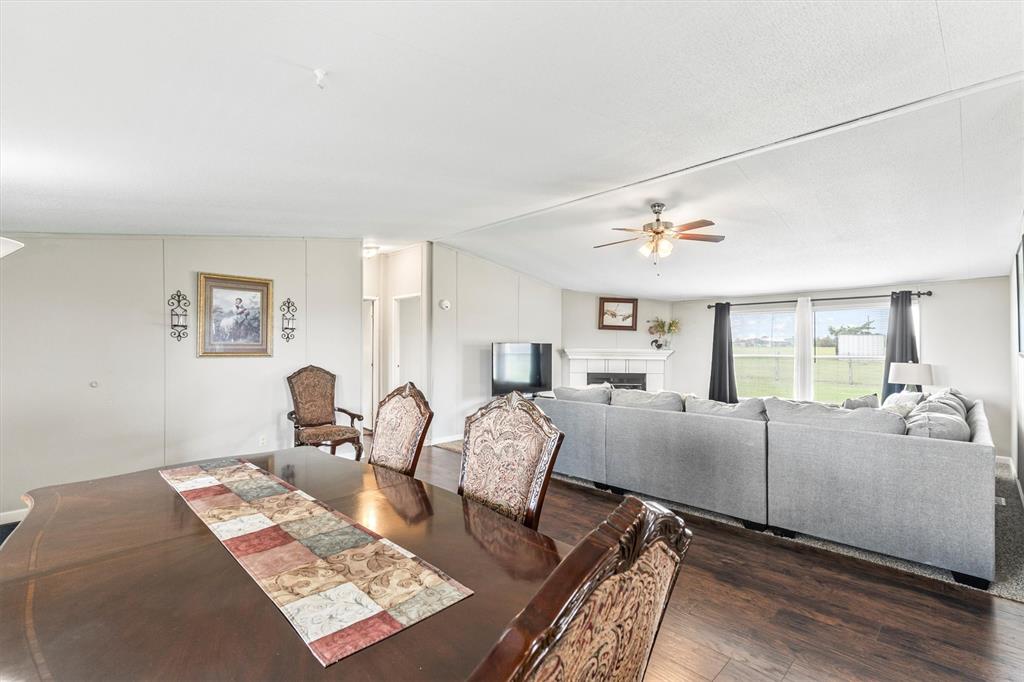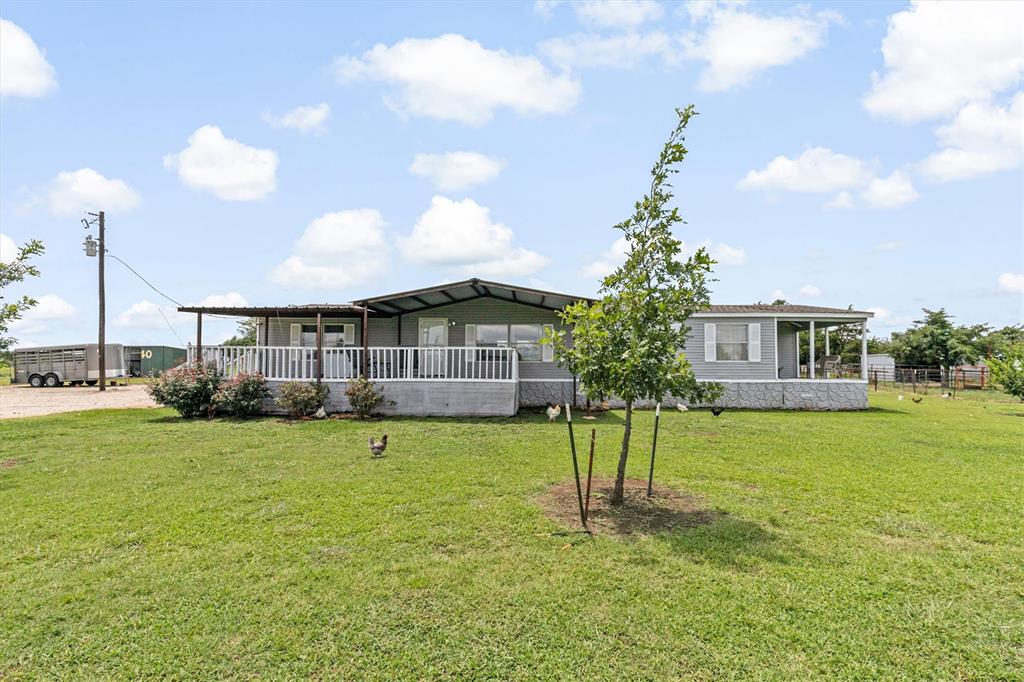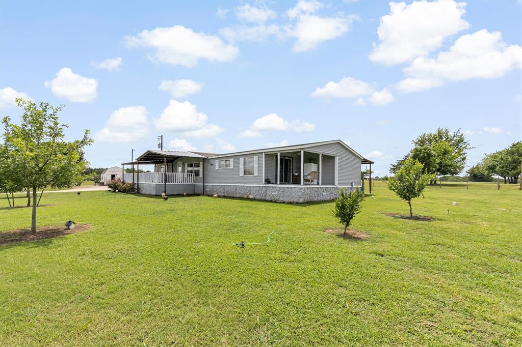 Discover peaceful country living on 5 beautiful acres in Lone Oak! This spacious 4-bedroom, 2-bath manufactured home offers over 2,000 sq ft of comfortable living space with a bright, open floor plan and stylish updates. The spacious kitchen features granite countertops, a convenient island, walk-in pantry, built-in cabinets, and an eat-in breakfast area. The oversized dining and living rooms are perfect for entertaining, complete with a cozy wood-burning fireplace and luxury vinyl plank flooring. The private primary suite features a walk-in closet and ensuite bath with dual sinks, granite counters, a garden tub, and a separate shower. Secondary bedrooms are generously sized, each with ceiling fans, and share a full bath. Outside, enjoy the wide-open space and added functionality: a 12x12 chicken coop, 12x24 stall, 16x16 storage building, and a 4-year-old electrical box already prepped for a future workshop. Covered front and back decks provide the perfect spots to relax and take in the views. The property is fully fenced and gated with open pasture, making it ideal for animals or a hobby farm. Recent updates include a new AC unit (approx. 1 year old). Located outside city limits with no known restrictions—bring your animals and your vision!
