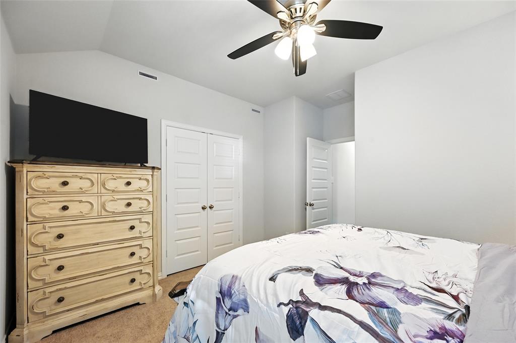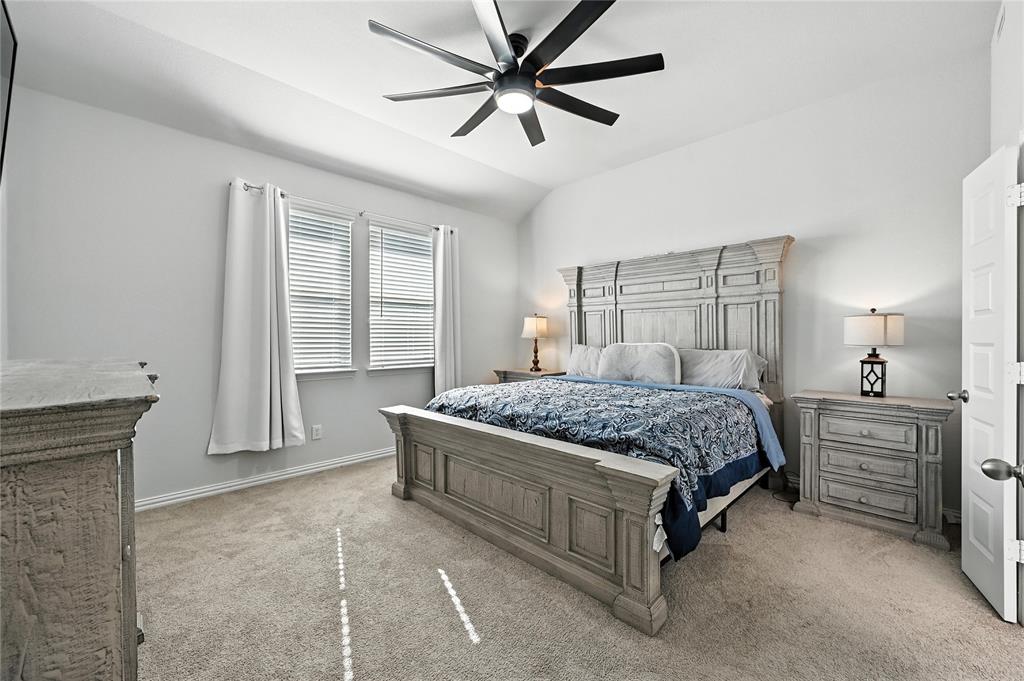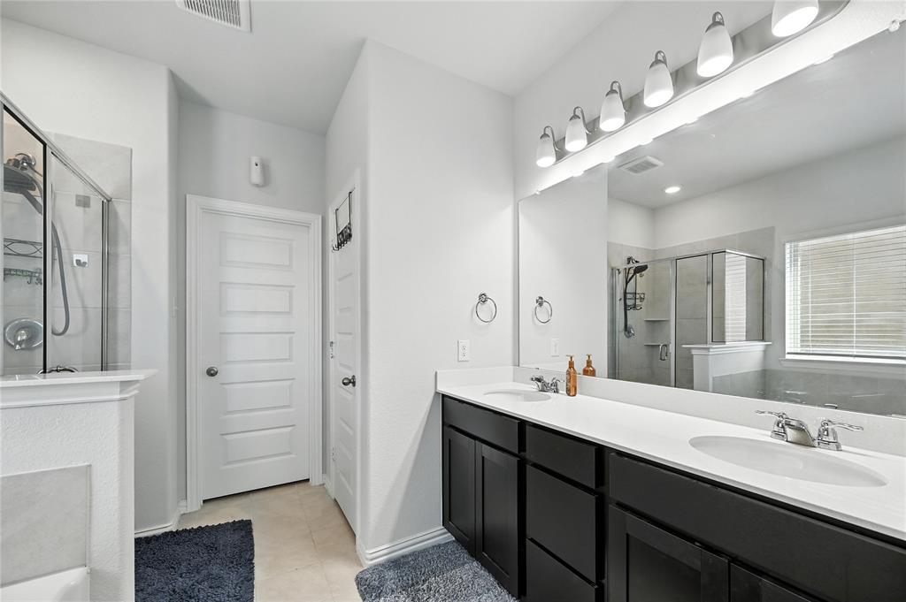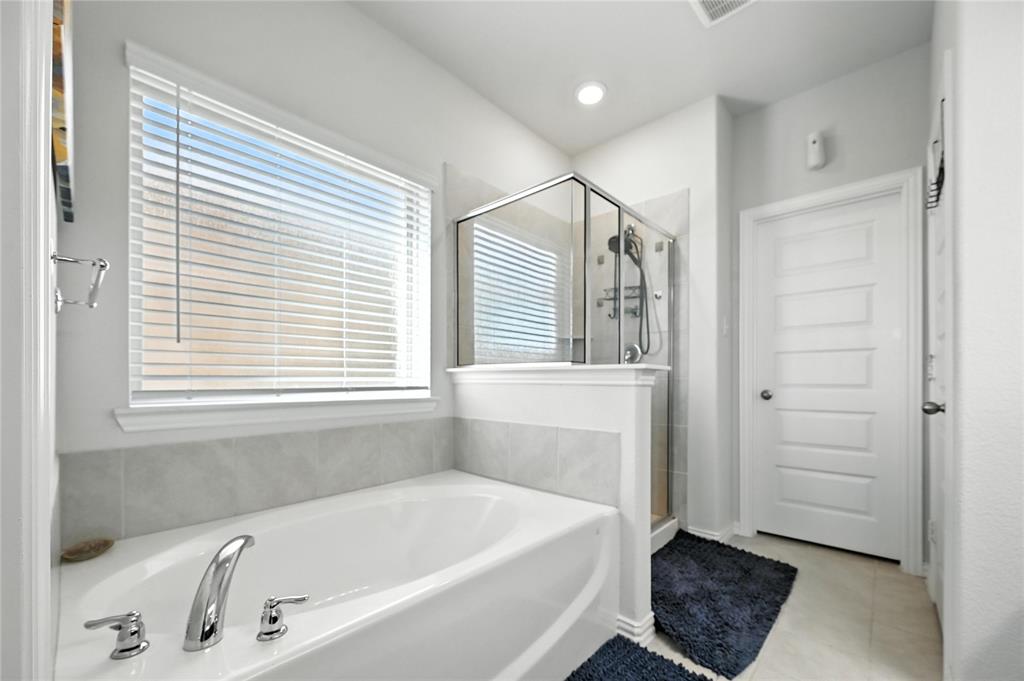The primary suite is a true retreat with a garden tub, a large separate shower, and a massive walk-in closet. All bedrooms feature walk-in closets, providing ample storage space for the whole family.
