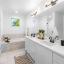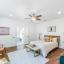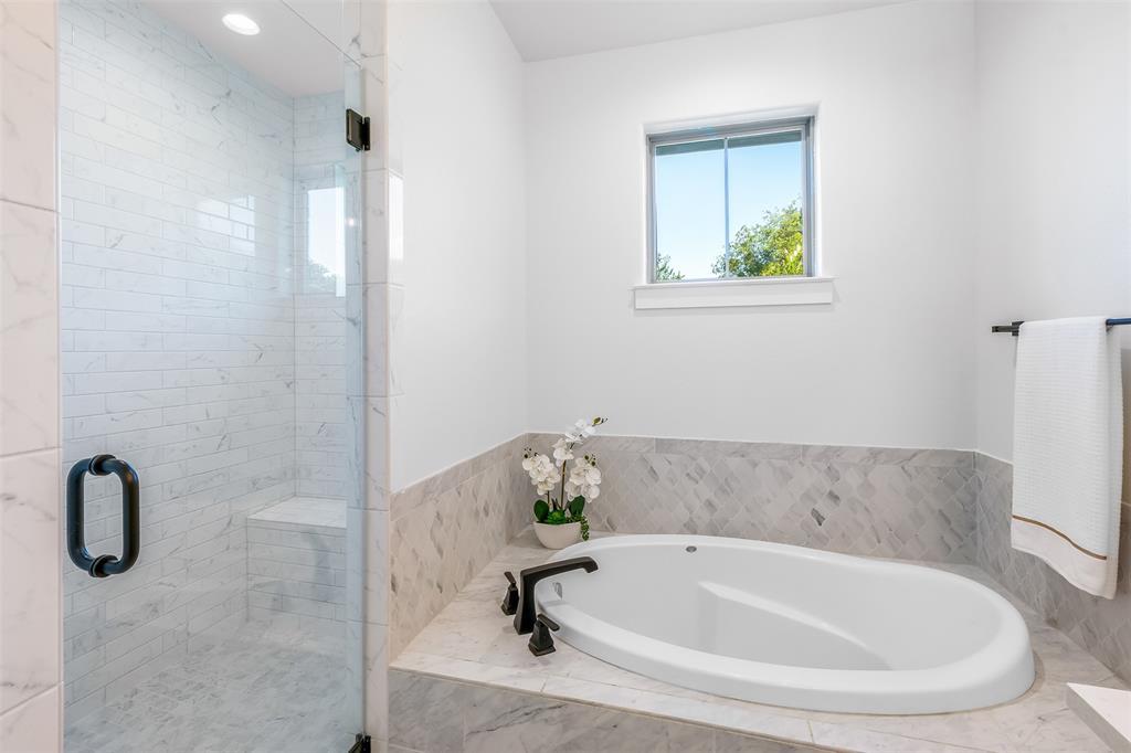 The vaulted ceiling continues out onto the covered patio where you will be wowed by the thoughtful design of the outdoor living space. The privacy fence surrounds the low-maintenance turf yard and has a separate dog play yard for your pup. The heated, saltwater pool and hot tub will be enjoyed year round. Don't overlook the outside access half bathroom for your pool party guests!
