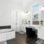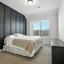 Step inside to find warm hardwood floors, soaring ceilings, and abundant natural light pouring through oversized windows. The open-concept living space centers around a sleek fireplace with surround detail, framed by wood-beamed ceilings and stylish accent walls. An upgraded glass panel front door and matte black hardware throughout the home create a consistent, elevated aesthetic.
