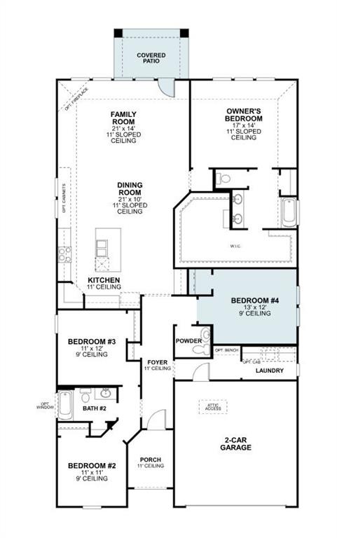 Escape the hustle and bustle of life in your luxurious owner's suite. An optional bay window extends the space while drawing in dazzling natural light. A spa-inspired owner's bathroom awaits, where you'll enjoy the daily convenience of a double-bowl vanity, private water closet, and a walk-in shower. Upgrade to the deluxe owner's bath layout to enjoy the convenience of both a tub and a shower.
