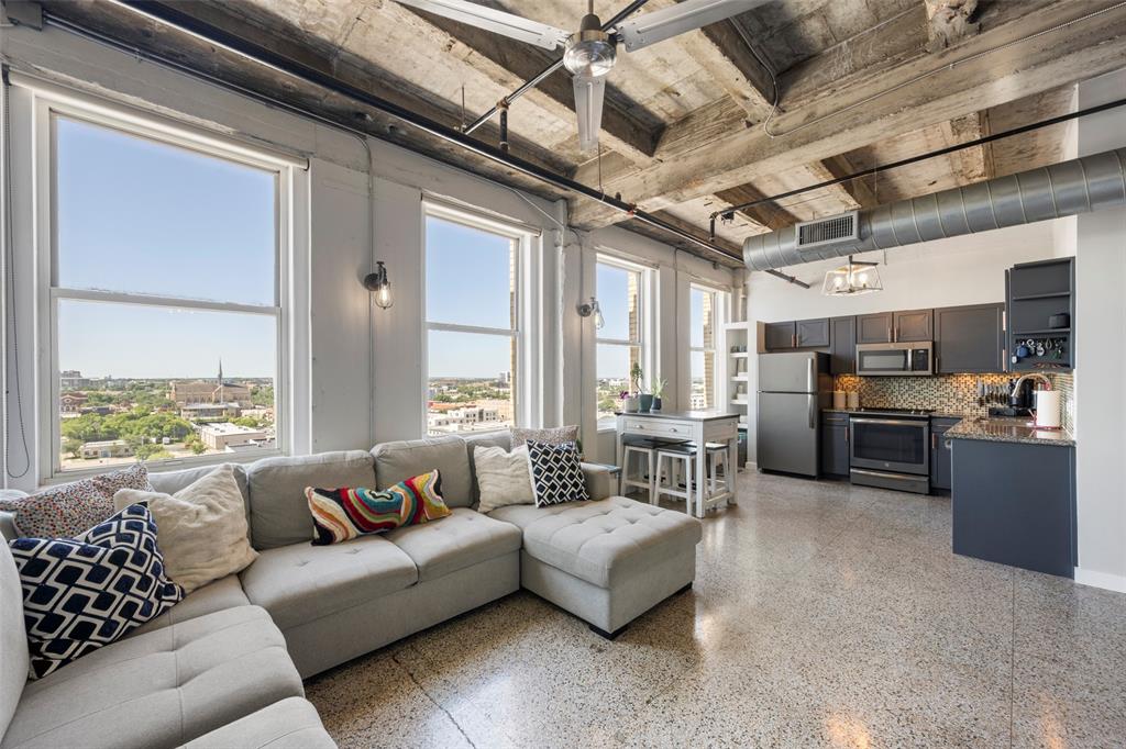 Location! Urban Sophistication Meets Historic Charm at the T&P Lofts. Experience elevated downtown living in this stunning 10th-floor condo located in the iconic and historic Texas & Pacific (T&P) building. Boasting four oversized south-facing windows and original terrazzo floors, this loft-style residence offers breathtaking views of Fort Worth's Near Southside skyline, flooding the space with natural light by day and city lights by night. This open-concept unit seamlessly blends vintage character with modern industrial style, featuring soaring concrete ceilings, exposed ductwork, and a layout that feels both spacious and uniquely urban. Residents of the T&P Lofts enjoy access to an impressive suite of amenities, including 24-hour concierge and on-site management, High-speed Spectrum cable & internet package, State-of-the-art fitness center and resistance pool, 3 beautifully landscaped courtyards with Weber gas grills, Club room, media room, and business center with computers, scanner, copier, and printer. Expansive resident patio and lounge, 2 unassigned covered garage spaces, Secure, low-maintenance urban living in a landmark Art Deco building. Live steps from Fort Worth's vibrant nightlife, dining, and transportation hub. Located in the heart of downtown Fort Worth, this condo offers unbeatable proximity to the Texas A&M School of Law, Medical District, shops, coffee spots, and the dining, arts, and nightlife scenes of Sundance Square, Near Southside, and Magnolia Avenue. Enjoy direct access to the commuter rail platform for both TEXRail & the Trinity Railway Express, providing seamless travel to DFW Airport, Grapevine, Irving, Dallas Medical District, American Airlines Center, and downtown Dallas just steps from your back door. Great option for downtown, medical, airport workers or retirees downsizing. Don’t miss your chance to own a piece of history in one of Fort Worth’s most beloved landmark buildings. Motivated seller! Can be sold with furnishings.