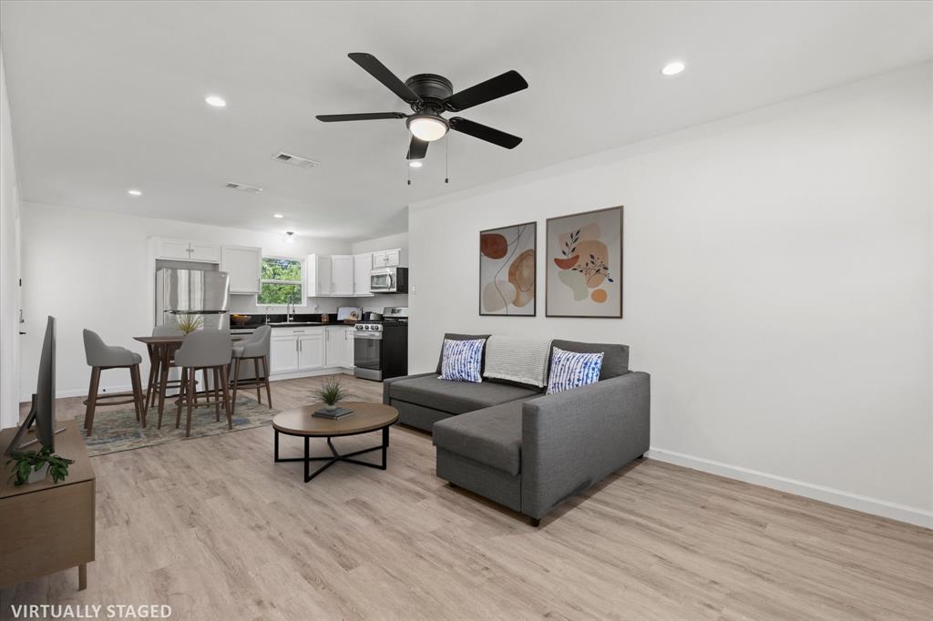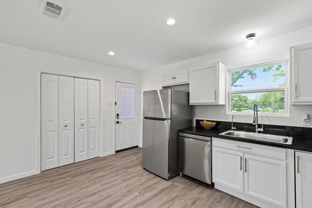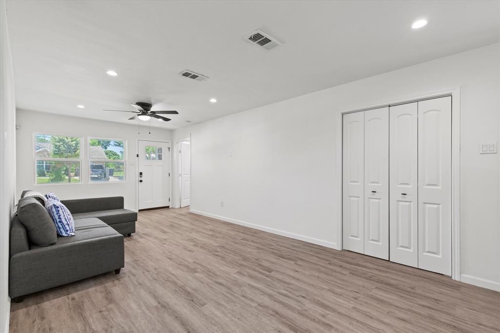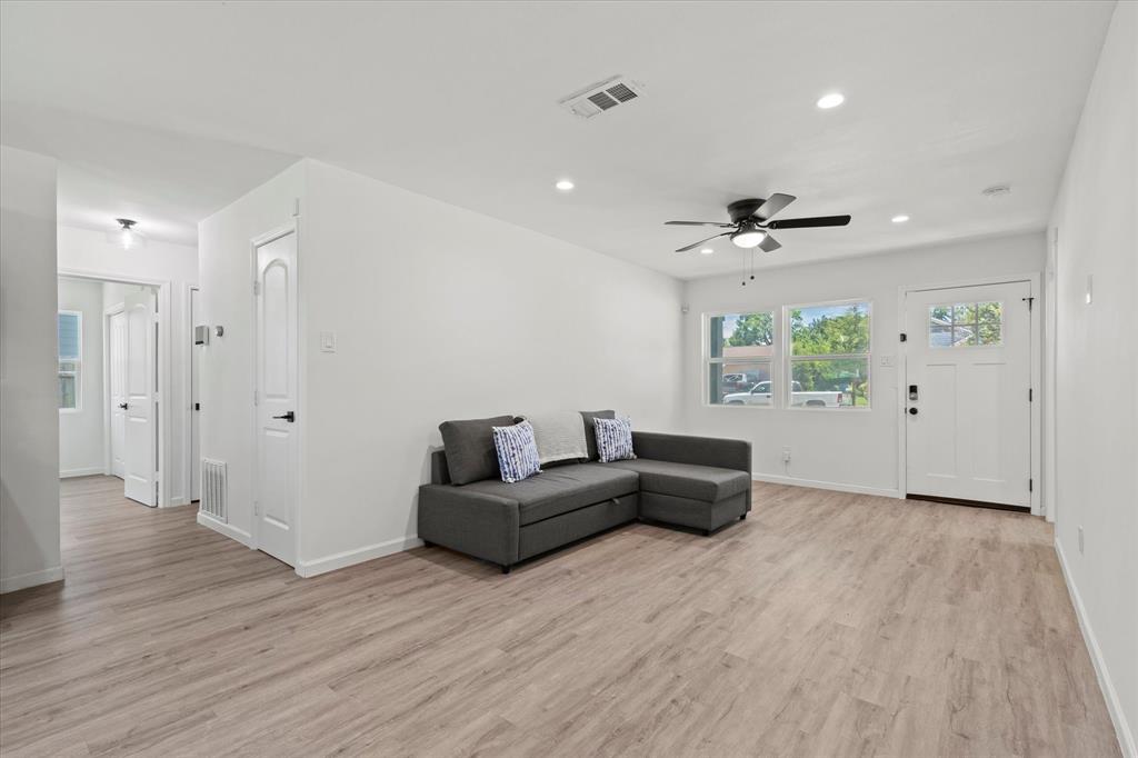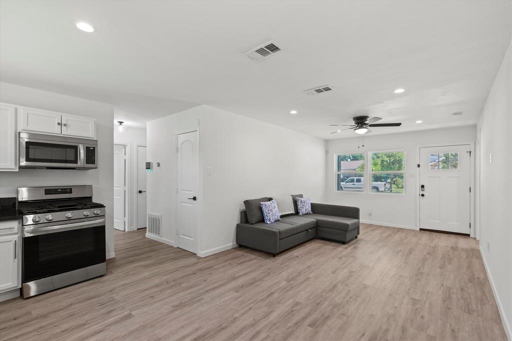 Step inside this stunningly updated single-story home, perfectly situated on an oversized lot with direct gate access to scenic Embree Park. Inside, you'll find gorgeous, easy-to-maintain wood-look luxury vinyl plank flooring that flows throughout the open-concept layout. The spacious living room, kitchen, and dining area offer seamless sight-lines—ideal for entertaining or everyday living. The beautifully renovated kitchen features granite countertops, bright white cabinetry with modern hardware, a water filtration system, pantry, and sleek LG stainless steel appliances, making meal prep a joy. Retreat to the private primary suite, thoughtfully separated from the secondary bedrooms, offering three closets and a fully updated ensuite bathroom. Both the primary and guest bathrooms have been tastefully renovated with contemporary vanities, updated lighting, stylish tile surrounds, and modern fixtures. Step outside to your expansive backyard oasis complete with a large deck—perfect for outdoor entertaining—and direct access to Embree Park for added recreation and tranquility. Enjoy peace of mind with major system updates and repairs already completed. This move-in-ready gem combines style, comfort, and location—all in one incredible package.