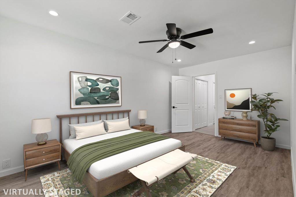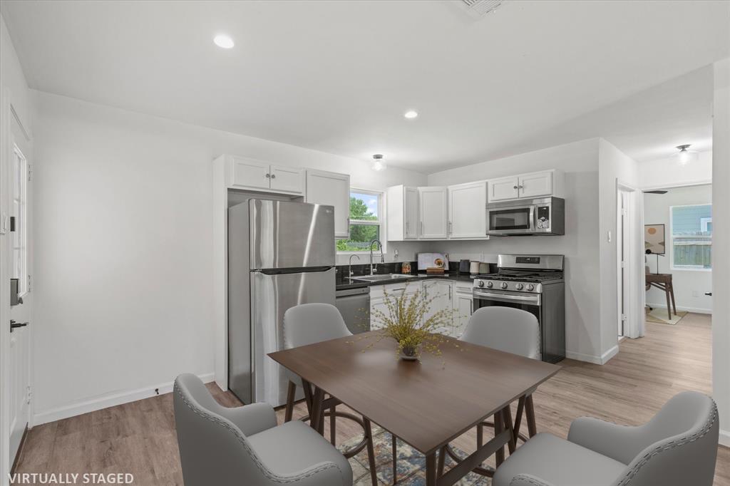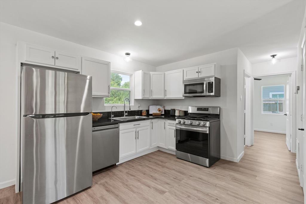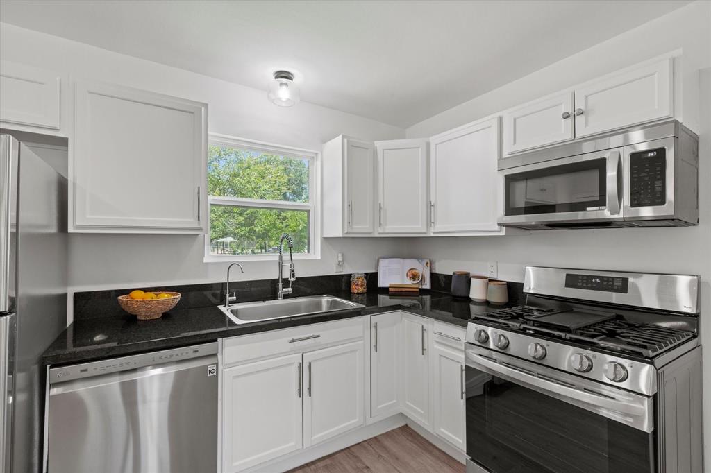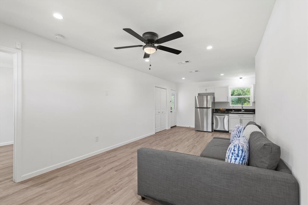 Step inside this stunningly updated single-story home, perfectly situated on an oversized lot with direct gate access to scenic Embree Park. Inside, you'll find gorgeous, easy-to-maintain wood-look luxury vinyl plank flooring that flows throughout the open-concept layout. The spacious living room, kitchen, and dining area offer seamless sight-lines—ideal for entertaining or everyday living. The beautifully renovated kitchen features granite countertops, bright white cabinetry with modern hardware, a water filtration system, pantry, and sleek LG stainless steel appliances, making meal prep a joy. Retreat to the private primary suite, thoughtfully separated from the secondary bedrooms, offering three closets and a fully updated ensuite bathroom. Both the primary and guest bathrooms have been tastefully renovated with contemporary vanities, updated lighting, stylish tile surrounds, and modern fixtures. Step outside to your expansive backyard oasis complete with a large deck—perfect for outdoor entertaining—and direct access to Embree Park for added recreation and tranquility. Enjoy peace of mind with major system updates and repairs already completed. This move-in-ready gem combines style, comfort, and location—all in one incredible package.