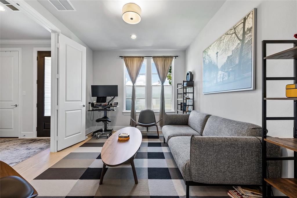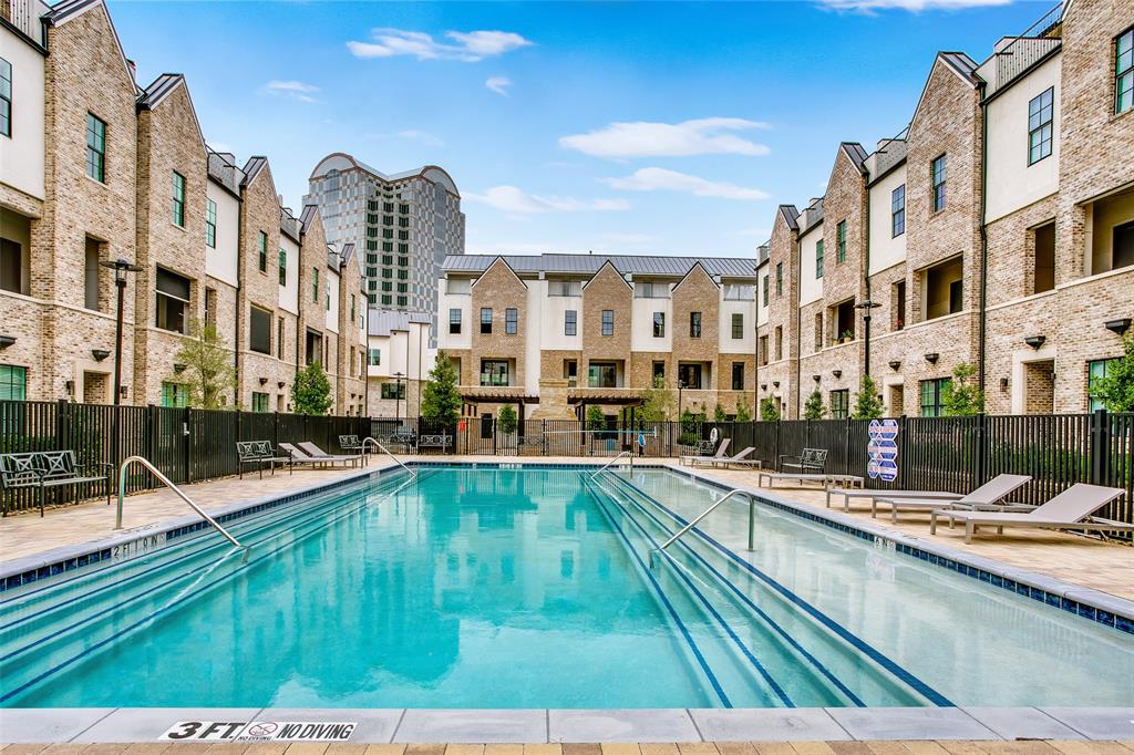 UNDER CONSTRUCTION WITH ESTIMATED COMPLETION IN DECEMBER! This stunning 3-bedroom, 3.5-bath end-unit townhome offers one of the most desirable locations in the community, with breathtaking views stretching from the greenbelt and Elm Fork of the Trinity River all the way to downtown Dallas. Designed for both luxury and convenience, this home features a private rooftop terrace for outdoor entertaining and a second-floor balcony to take in the scenic surroundings. Inside, the gourmet kitchen is a chef’s dream, boasting Fisher & Paykel appliances, exquisite quartz countertops, a designer tile backsplash, and soft-close cabinetry. The spacious, spa-like primary suite is a true retreat, featuring a large drop-in tub, walk-in shower, and an expansive walk-in closet. Luxury finishes include upgraded engineered hardwood floors throughout, soaring 12-foot ceilings on the main living level, and oversized sliding panel doors that fill the space with natural light. This exclusive community will offer a lush central courtyard with a resort-style pool and is just a short walk to DART, Water Street, Toyota Music Factory, Campion Trail, and Lake Carolyn. PLEASE GO TO MODEL HOME FOR ALL OPEN HOUSES AND SHOWINGS - 5454 PATTERSON ST.
