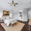 The primary suite offers a private sanctuary, complete with a spa-like en-suite bathroom that includes a freestanding soaking tub, an oversized glass-enclosed shower, and a boutique-style walk-in closet. Outdoors, a beautifully landscaped backyard extends the living space, featuring a 22-foot covered patio perfect for lounging or entertaining guests.