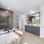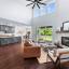 Natural light floods the interior through expansive windows, illuminating the clean architectural lines, soaring ceilings, and high-end finishes throughout. The living areas flow effortlessly across 12x12 ceramic tile floors into a stunning designer kitchen. This culinary space is equipped with premium appliances, luxurious countertops, custom cabinetry, and a statement island ideal for entertaining or casual gatherings. A Viking ceramic cooktop anchors the kitchen, and gas is also available for those who prefer open-flame cooking.