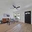 The bathroom has been completely remodeled with tile to the ceiling in the shower, a new dual vanity, and tasteful modern finishes that elevate the space. Additional updates include a new 30-year roof, new PVC plumbing throughout the home, and new washer and dryer hookups conveniently located in the garage.