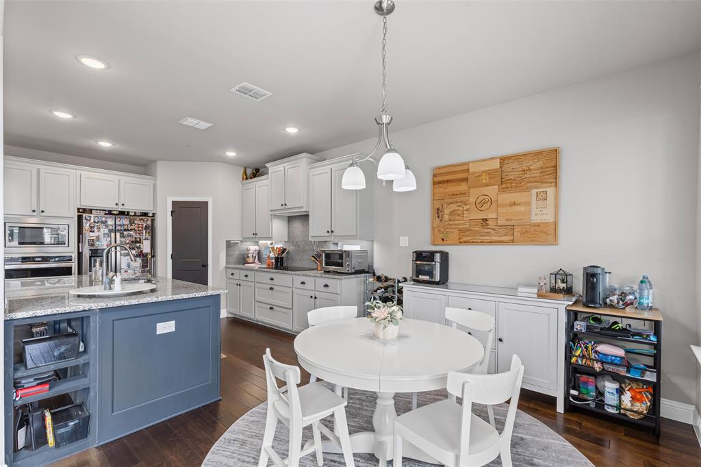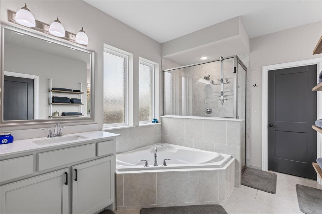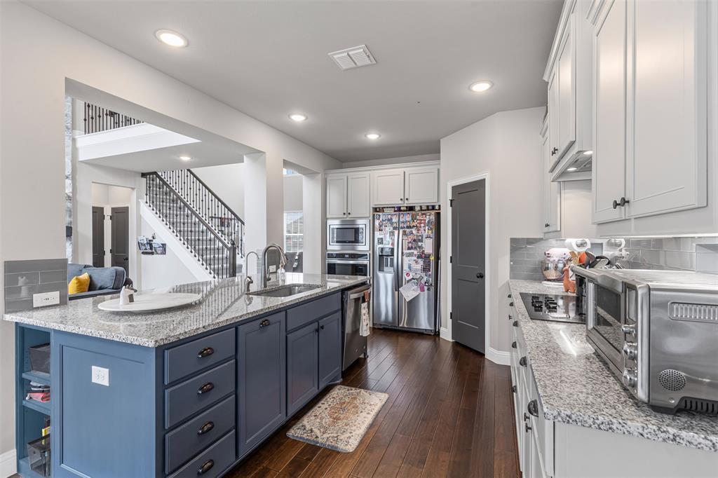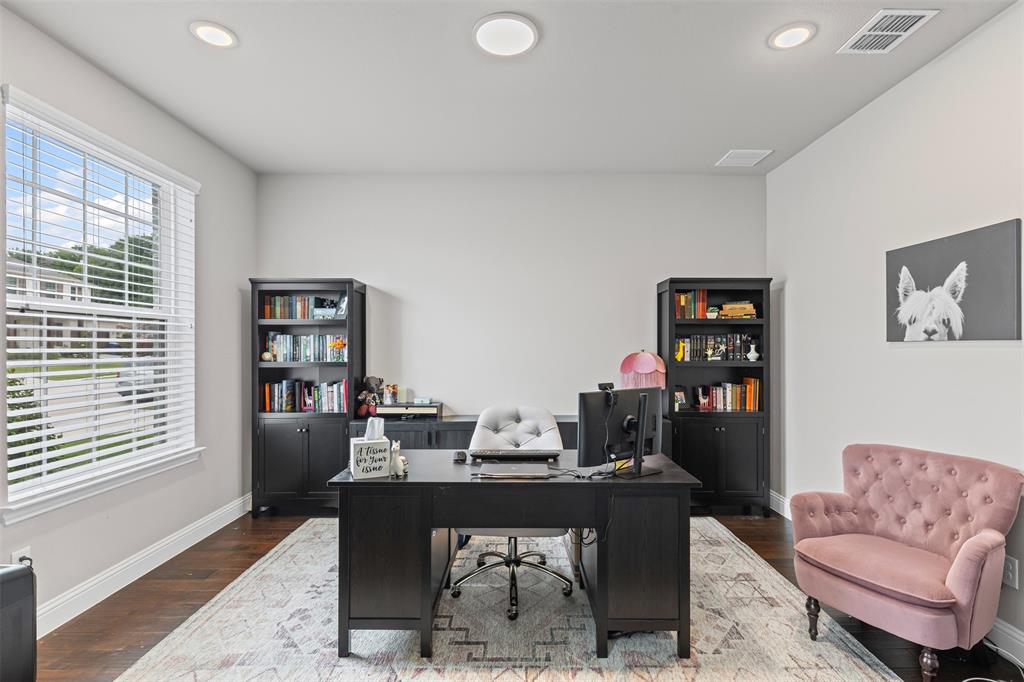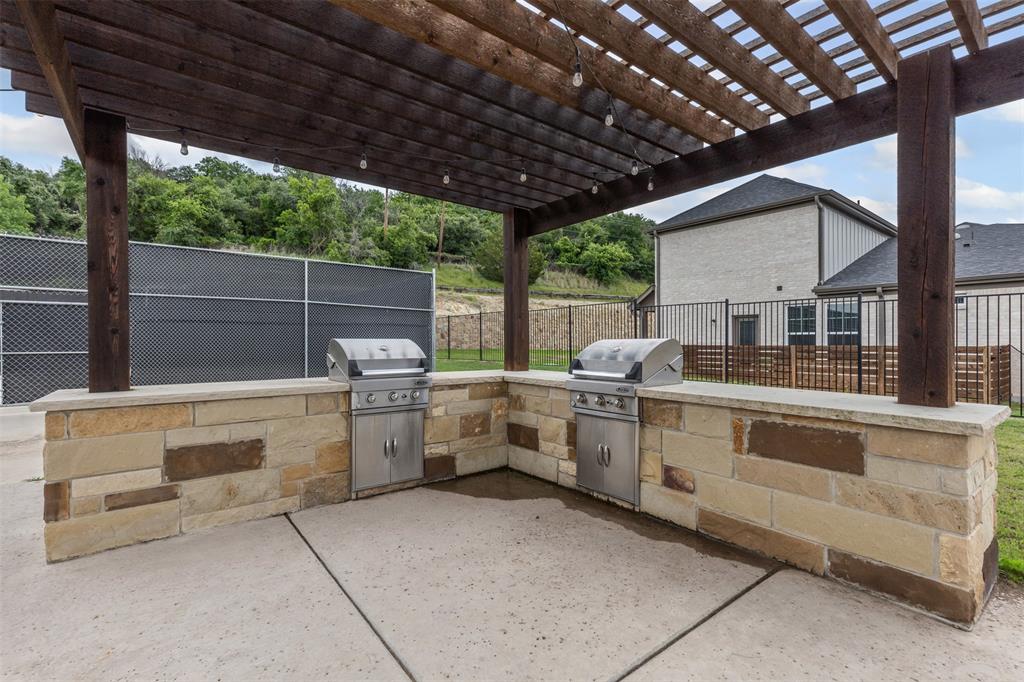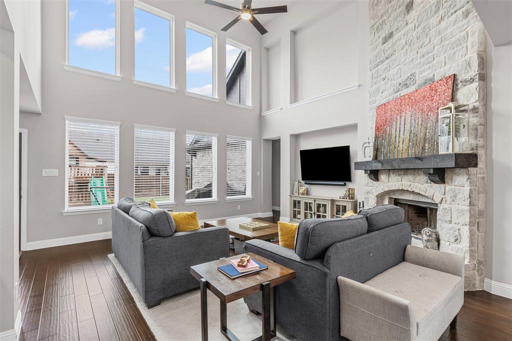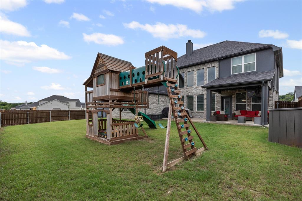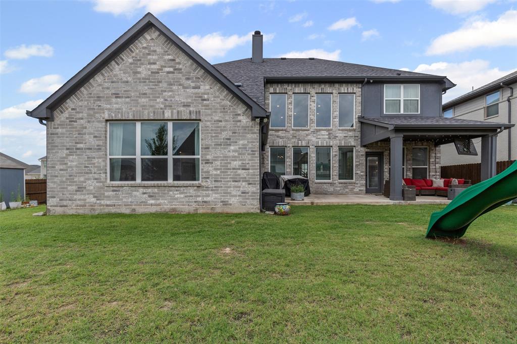 This 3,385 square foot home features 4 spacious bedrooms, 3.1 baths, and an open, light-filled floorplan with soaring ceilings, expansive windows and elevated finishes throughout. The kitchen showcases a large island, quartz countertops, gas cooktop and plenty of cabinetry—ideal for both everyday living and entertaining. Flexible living spaces include a dedicated office, media or game room, and versatile areas for dining, a library, or play. A first-story, generous owner's suite, with sitting area, has a comfortable, thoughtfully-designed ensuite bathroom with dual vanities, soaking tub, shower, separate water closet and a generous walk-in closet. Additional bedrooms each feature walk-in closets and easy access to well-appointed baths. Enjoy the spacious backyard with a covered patio for outdoor relaxation. A 3-car garage offers ample storage. This home also features a Culligan water softener with a reverse osmosis system. The Reserves at Trinity, is a thoughtfully designed neighborhood that is part of the highly acclaimed Aledo ISD and provides a simplified, connected lifestyle. Surrounded by scenic greenbelts and winding creeks, residents enjoy a variety of outdoor amenities including walking trails, a private resort-style pool, a lap pool, and courts for tennis, pickleball, basketball, and bocce ball. The amenity center also features a fitness area with treadmills and weights, outdoor grills, shaded cabanas, and plenty of spaces to gather and relax. For those seeking more urban conveniences, high-end shopping, popular restaurants, a brewery, and local entertainment are all within walking distance at The Shops at Willow Park. Adding to its appeal, The Reserves at Trinity offers a significantly lower tax rate compared to nearby communities and has no PID or MUD tax—making it as practical as it is inviting.