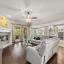 The open floor plan features a spacious living room with fireplace and designer touches throughout — including custom archways, upgraded lighting, neutral paint and luxury window treatments including up-shades and electric front-facing shades.