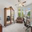 The chef’s kitchen is a true centerpiece, equipped with a high-end Thermador cooktop, a large island, Taj Mahal quartz countertops, custom cabinetry, decorative lighting, and a sunny breakfast nook. The private office with French doors is perfect for remote work, while the main-floor primary suite offers a spa-like retreat with an ensuite bath and his-and-hers walk-in closets.