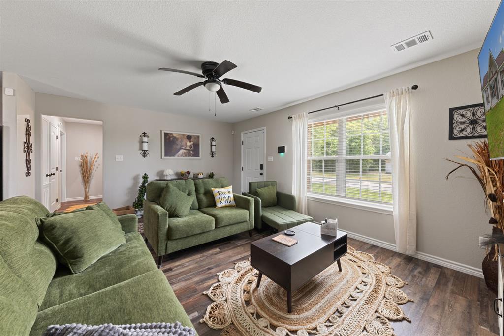 on-trend color palette, durable vinyl plank flooring, and spacious living area that flows seamlessly into a beautifully