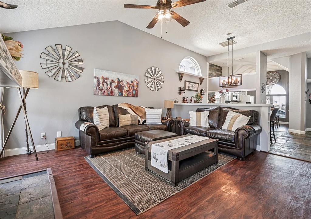 **SELLER is offering a considerable contribution toward a LIST & LOCK PROGRAM which significantly REDUCES THE BUYER'S QUALIFYING INTEREST RATE!** Charming 3-Bedroom 2-Bath Home with Vaulted Ceilings Near Falcon Ridge Park. Welcome to this beautifully maintained home nestled in a desirable neighborhood with easy access to major routes and just a short walk to Falcon Ridge Park. Step inside to a spacious entryway and be greeted by stunning vaulted ceilings in both the living room and master bedroom, creating an open and airy atmosphere. The eat-in kitchen features granite countertops, a breakfast bar, and a separate dining area—perfect for casual meals or entertaining guests. Slate tile floors and decorative kitchen walls add unique character and style, while the cozy wood-burning fireplace with gas logs brings warmth and charm to the living space. Enjoy outdoor living with an expanded arbor over the patio, a fenced backyard ideal for entertaining, and mature trees providing shade and privacy. A 10x10 shed and 4x10 greenhouse offer great storage and gardening space. Additional updates include a new front door (2025), gutters (2019), and roof (2019), giving you peace of mind. Located near Lockheed Martin and in a fantastic area with parks, schools, and shopping nearby, this home combines comfort, style, and convenience. Don’t miss this opportunity—schedule your showing today! ASK FOR DETAILS on benefits of LIST & LOCK!