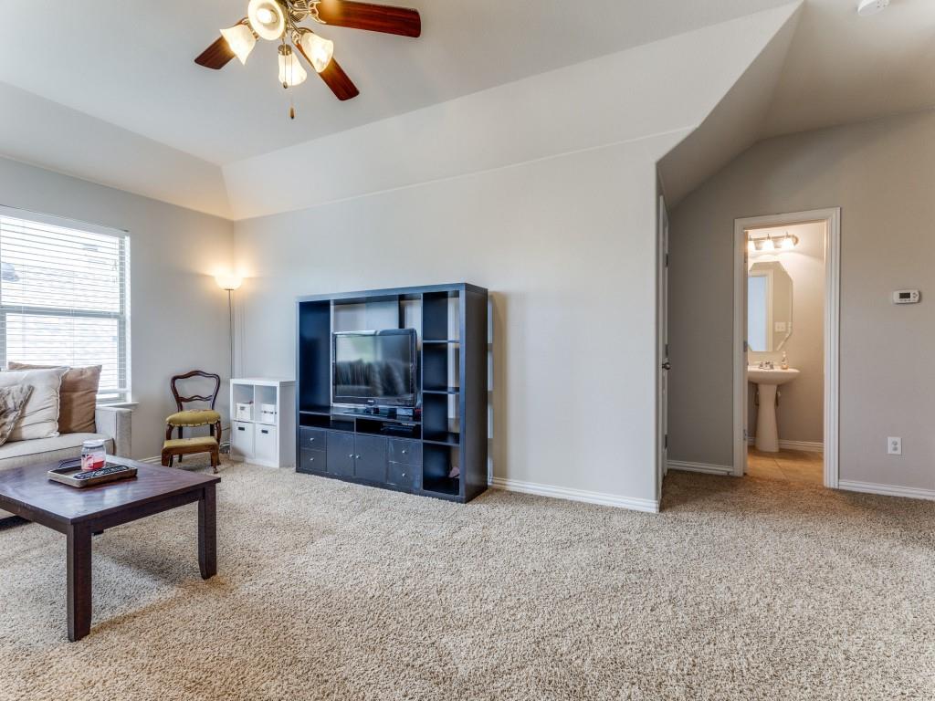 The primary suite is located on the main floor and includes dual sinks, a soaking tub, separate shower, and a generous walk-in closet. Upstairs, you'll find a versatile game room or bonus space, perfect for play, hobbies, or an additional lounge area.