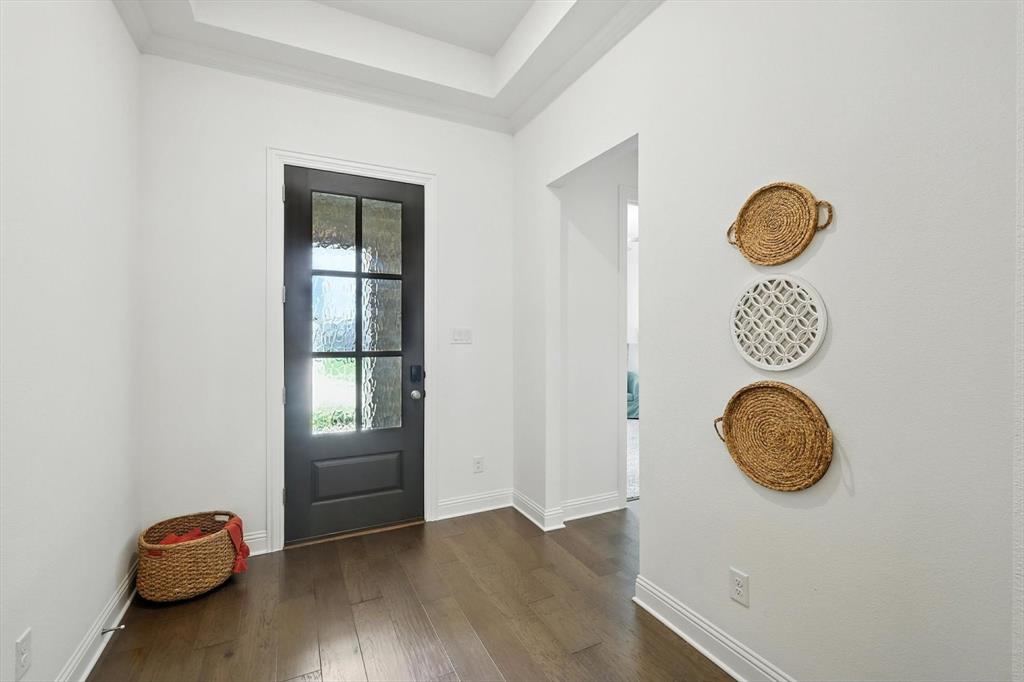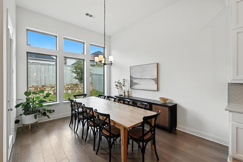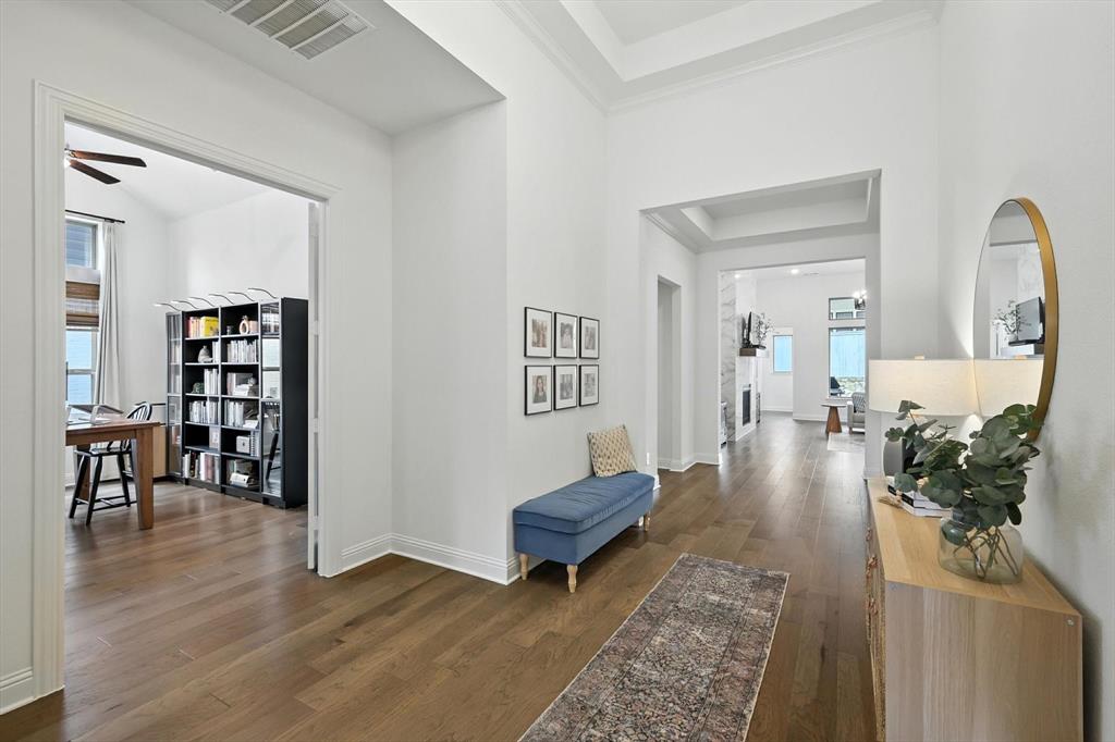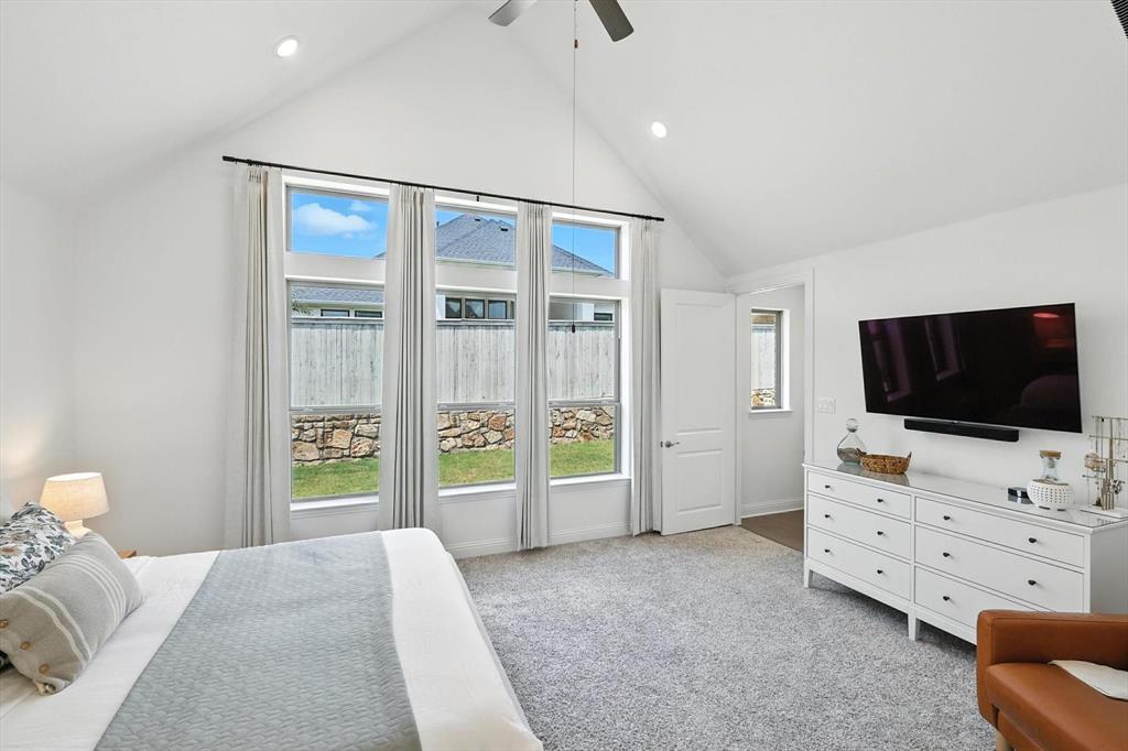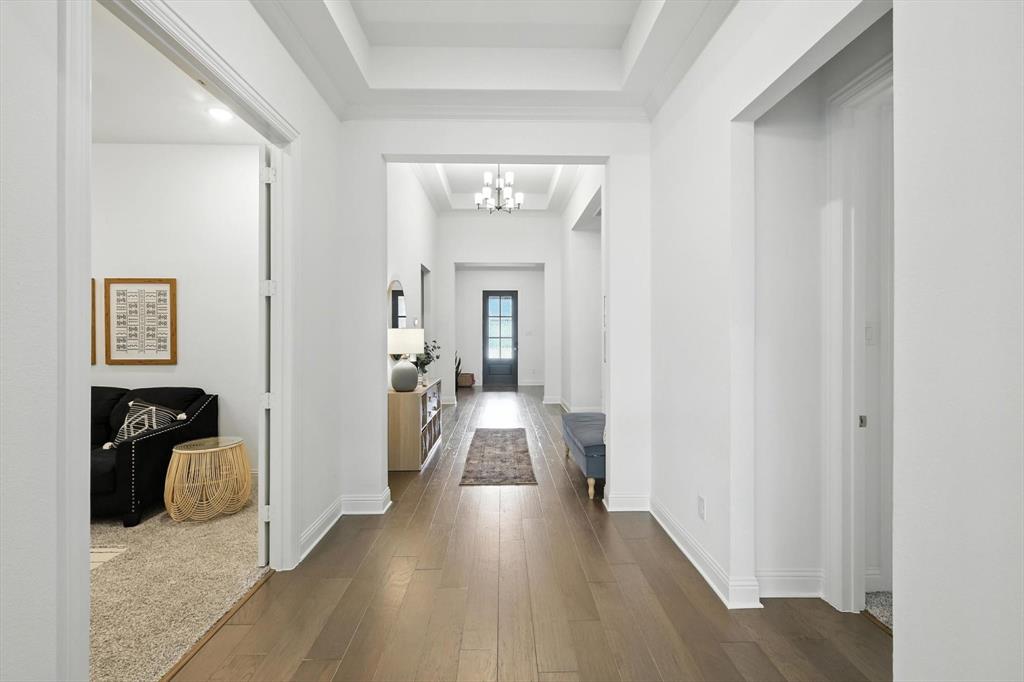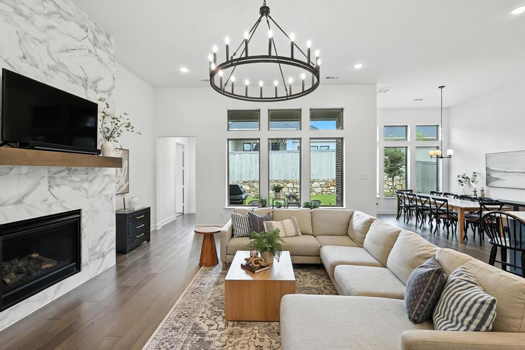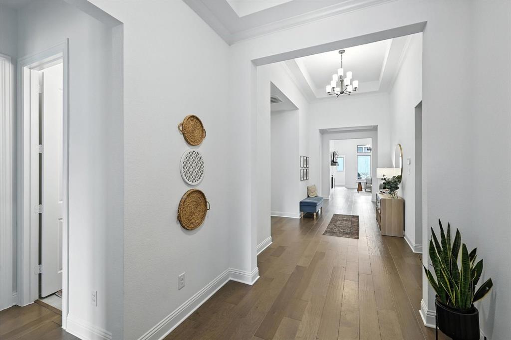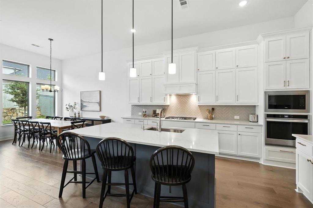 Built by Toll Brothers in 2024 the 4 bed 3 bath Lorelei floor plan is one of their most popular models. You will love the wide hallway with two oversized bedrooms and a full bath in the front with large walk-in closets. Make your way down the hallway to find a large office with French doors and large windows with beautiful bamboo shades. Across the hall is a media room with a pass through to the butler's pantry for access to snacks while your family gets cozy watching movies or playing video games in the media room! An additional bedroom with an attached bathroom is next along with a large. open living, dining and kitchen combo. This house has a butler's pantry as well as a very large walk in pantry perfect for large families. The primary suite is cozy with a vaulted ceiling and ensuite bath. Enjoy the large, free standing soaking tub after a long day and the oversized walk in shower with a beautiful tile floor. There is plenty of room to park in the three car tandem garage and the home is within walking distance to all the amenities Pecan Square has to offer including three pools, a gym, dog park, game hall, community work space, pickle ball courts, basketball courts as well as an outdoor entertainment area with a fire pit, grills and a pizza oven. Reach out today for a showing!