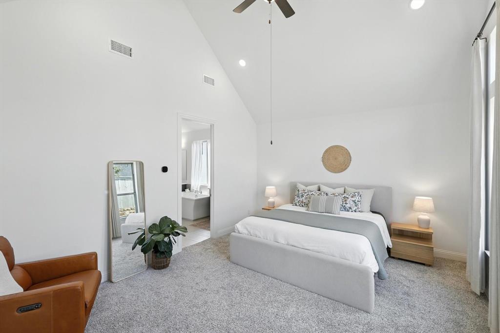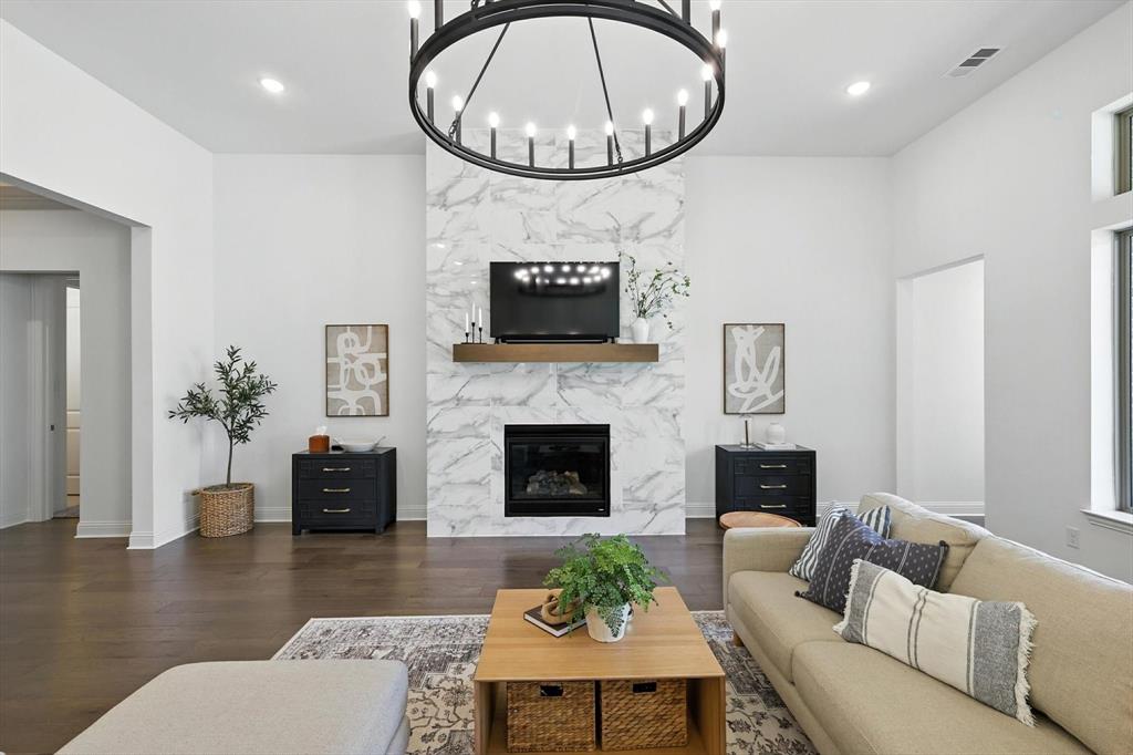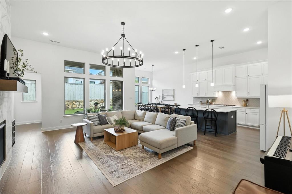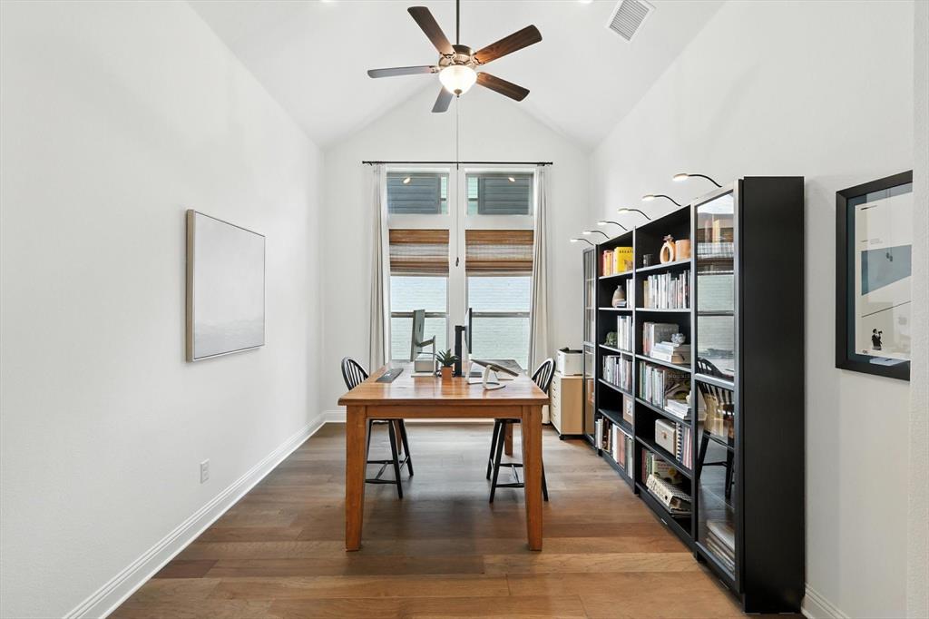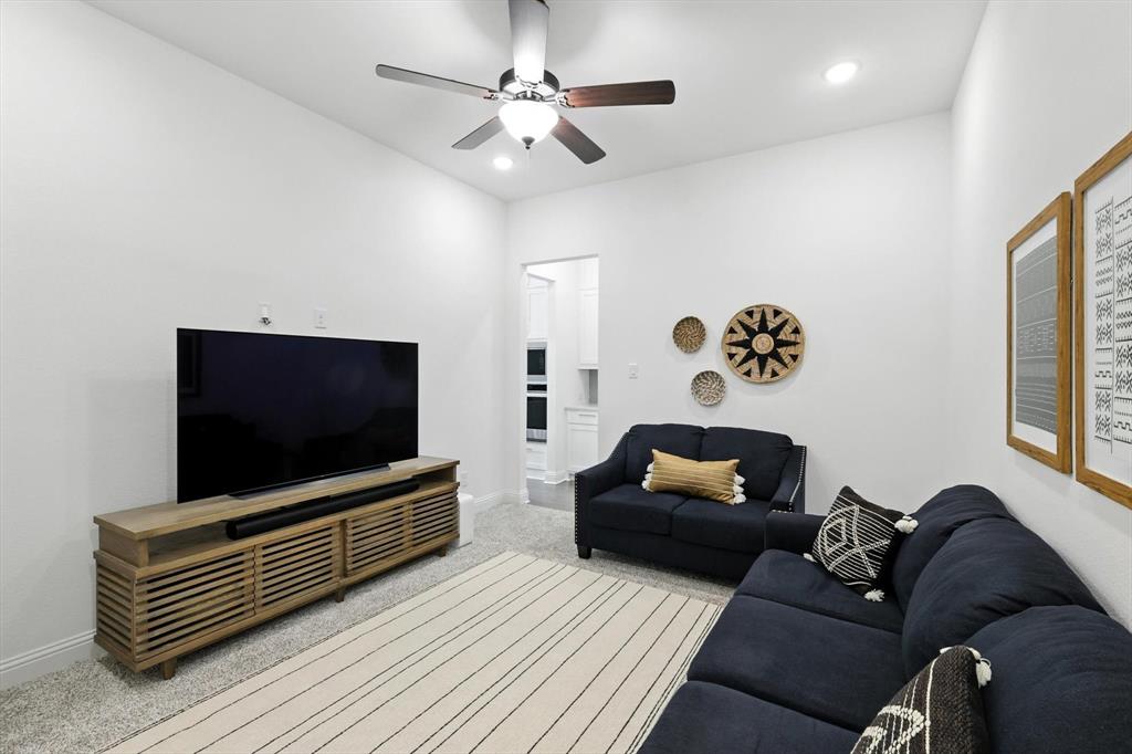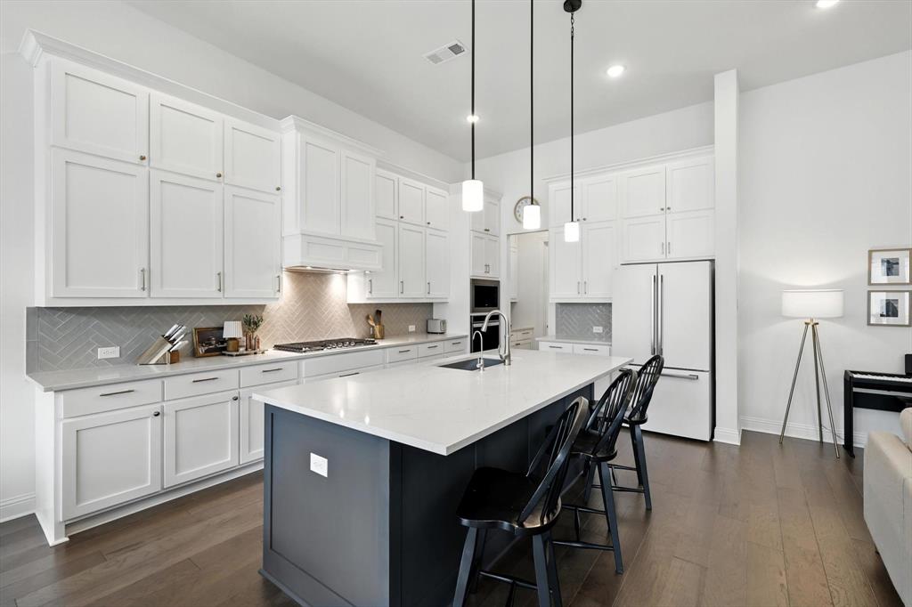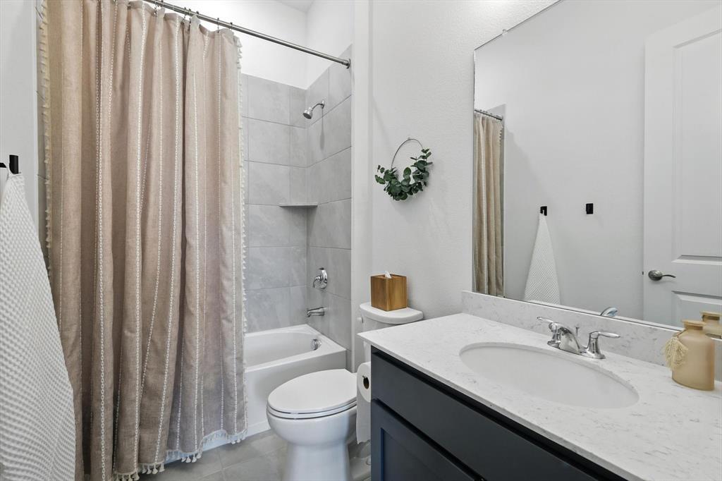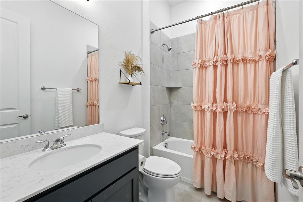 Built by Toll Brothers in 2024 the 4 bed 3 bath Lorelei floor plan is one of their most popular models. You will love the wide hallway with two oversized bedrooms and a full bath in the front with large walk-in closets. Make your way down the hallway to find a large office with French doors and large windows with beautiful bamboo shades. Across the hall is a media room with a pass through to the butler's pantry for access to snacks while your family gets cozy watching movies or playing video games in the media room! An additional bedroom with an attached bathroom is next along with a large. open living, dining and kitchen combo. This house has a butler's pantry as well as a very large walk in pantry perfect for large families. The primary suite is cozy with a vaulted ceiling and ensuite bath. Enjoy the large, free standing soaking tub after a long day and the oversized walk in shower with a beautiful tile floor. There is plenty of room to park in the three car tandem garage and the home is within walking distance to all the amenities Pecan Square has to offer including three pools, a gym, dog park, game hall, community work space, pickle ball courts, basketball courts as well as an outdoor entertainment area with a fire pit, grills and a pizza oven. Reach out today for a showing!