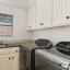 The well-appointed kitchen is designed for both form and function, featuring a center island, stainless steel appliances, and an adjacent breakfast room perfect for casual meals or morning coffee. A separate laundry room with sink is conveniently located near the kitchen.