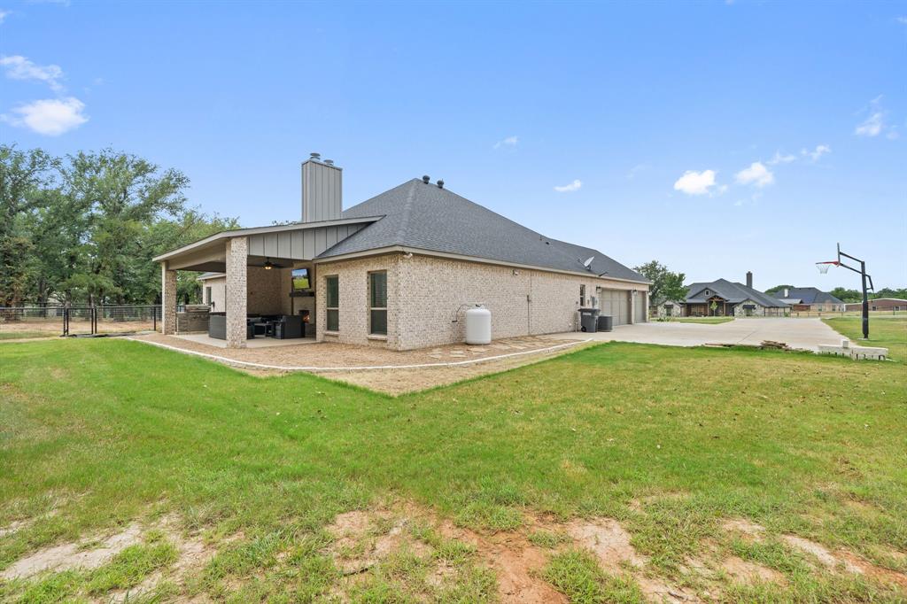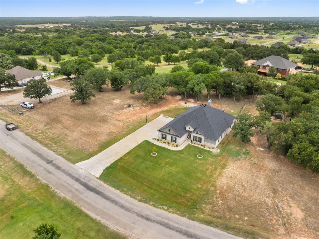 Welcome to 113 Oak Springs Lane, a stunning retreat nestled on a serene 2 acre lot in Weatherford, TX. This beautiful home offers the perfect blend of peaceful rural living and modern convenience, set on a spacious lot with mature trees and scenic views. Step inside to an open-concept living area filled with natural light, featuring high ceilings, a cozy fireplace, and elegant finishes throughout. The kitchen boasts granite countertops, stainless steel appliances, a large island, and ample storage—ideal for both daily living and entertaining. The primary suite is a true escape, complete with a spa-like ensuite bath featuring a soaking tub, walk-in shower, and dual vanities. Additional bedrooms are generously sized with great closet space. Outside, enjoy the large covered patio, perfect for relaxing or hosting guests. The expansive yard provides plenty of room for gardening, play, or future additions. Located in a quiet neighborhood with easy access to Weatherford’s shops, dining, and schools, this property offers both privacy and convenience. Don’t miss your chance to own this slice of Texas paradise!