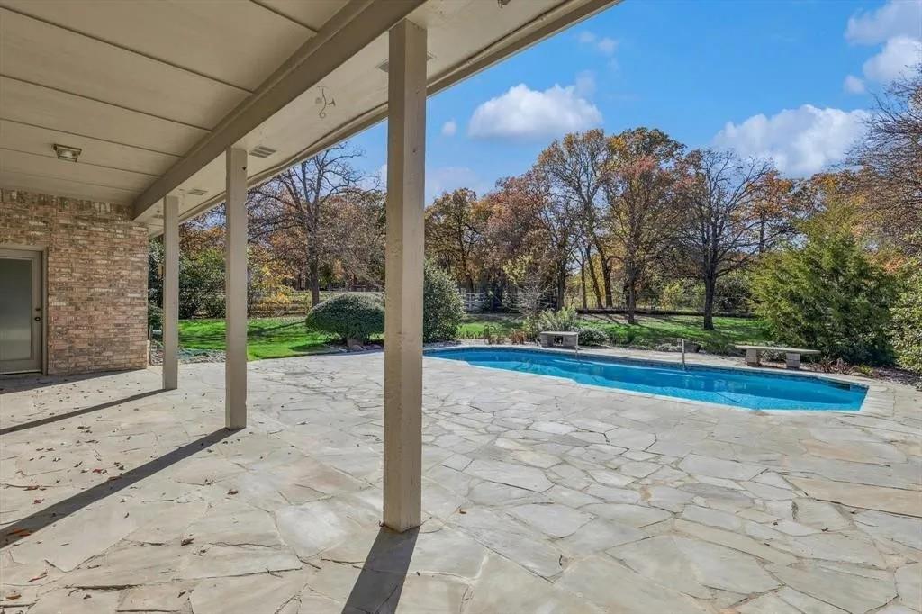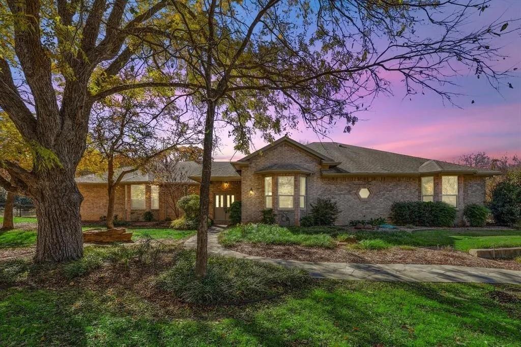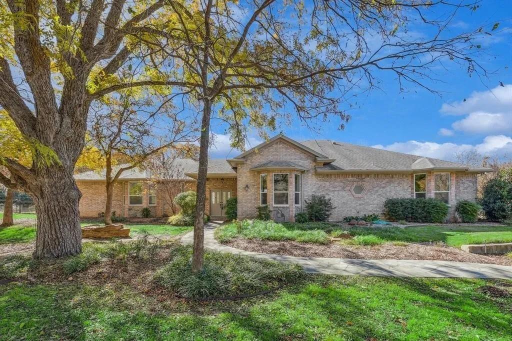 Nestled on 2.87 acres with over 100 mature Oak, Pecan, and Elm trees, this single-story, 3-bedroom, 3-bathroom estate offers a serene escape close to city amenities.