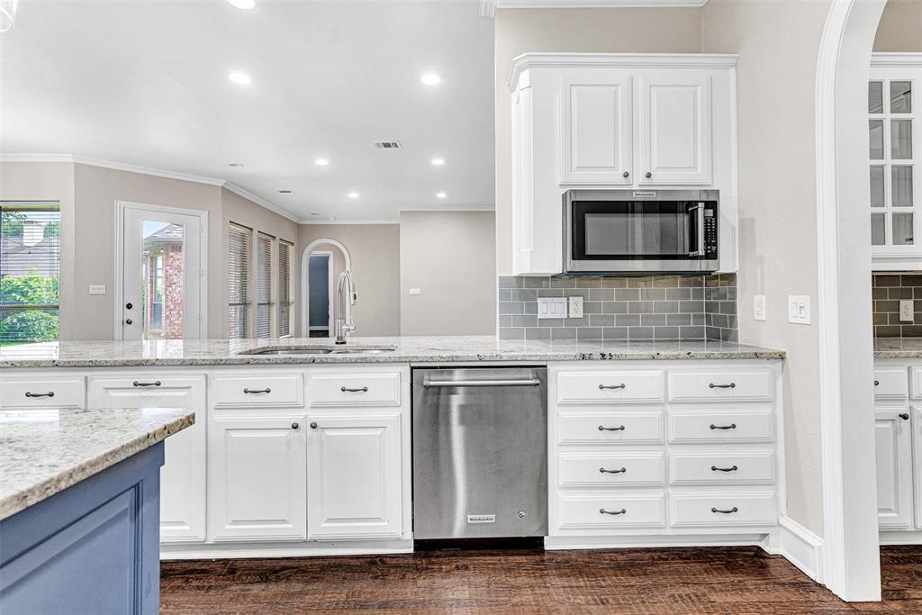 ** OPEN HOUSE SAT., SEPTEMBER 27TH FROM 1-4 PM **Wonderful home in the desirable Lakeside on Preston neighborhood, close to the community pool and tennis courts! Luxury touches in every room include plantation shutters, handscraped hardwood floors, abundant built-ins and more. The recently renovated utility room is remarkable with built-in cabinets and cubbies, updated sink and fresh paint! What you'll really love is the huge gourmet kitchen with granite counters, sleek white cabinets, built-in KitchenAid refrigerator, KitchenAid 6 burner gas cooktop and double gas convection ovens! Combine that with a handy butler's pantry, walk-in pantry, planning desk with storage and wine storage, you'll be preparing meals in your dream kitchen! The sunny breakfast nook and grand family room flow from the kitchen. The family room offers a gas log fireplace flanked by built-in cabinets and entertainment center. A luxurious primary suite offers backyard views and a spa-like bath with dual vanities, soaking tub, oversized shower and impressive walk-in closet with built-ins. A family friendly backyard is just beyond the covered patio - time to start planning your dream outdoor kitchen and living space! An executive home office and sublime formal living and dining rooms complete the first floor. The second level offers a large game room and three bedrooms, one with a private bath. Great location close to Preston Road, DNT, 190, Legacy West, Stonebriar Mall and more.