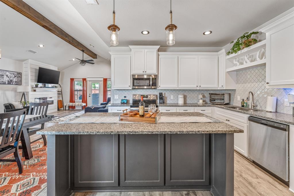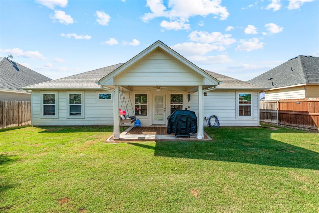 Step into this charming Traditional home, perfectly situated in the community of Canyon Creek. This 1492 square foot gem offers an open-concept layout designed for modern living. The light and bright kitchen anchors the home, featuring a large center island with a breakfast bar and extensive storage solutions. Custom cabinets, granite countertops, a decorative tile backsplash, updated lighting, and a wine-coffee bar create a truly beautiful culinary space. Adjacent to the kitchen and dining area, the living room invites relaxation with an electric fireplace, ideal for unwinding or family activities. Three split bedrooms provide distinct private spaces. The primary bedroom suite is bathed in natural light and includes a gorgeous ensuite with his-and-hers sinks and a spacious walk-in shower. On the opposite side of the home, two ample bedrooms share a well-appointed hall bathroom. This property boasts a fully fenced backyard, perfect for pets, play, or entertaining, along with a convenient 2-car garage. Experience exceptional comfort and easy access to shopping and amenities, with a park just around the corner. Showcasing pride of ownership, this home is ready for you to move in! The Canyon Creek neighborhood enhances living with a guarded entrance, lake access for fishing and recreation, a clubhouse, swimming pool, neighborhood park, and playground. This community seamlessly combines outdoor living with a strong sense of connection, ideal for families seeking a vibrant lifestyle. It truly has it all!