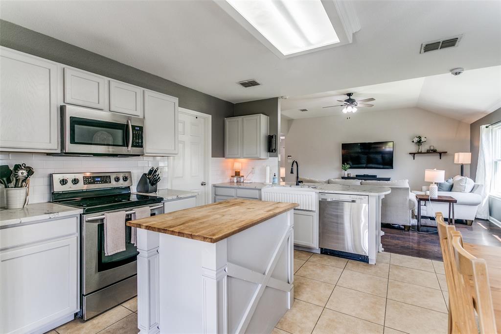 Inside? Amazing glow-up. The eat-in kitchen has luxurious quartz counters, a center island perfect for prepping or a great charcuterie spread!! The large walk-in pantry is perfect with easy and convenient access to ingredients and supplies! Don't miss the beautiful fluted, farmhouse sink overlooking the bright, open family room ..... you’re always part of the fun.