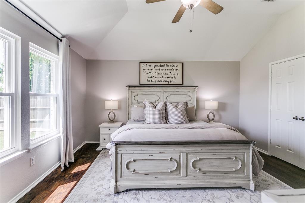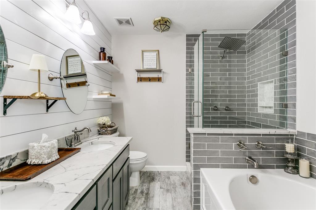 Each bedroom has its moment: one has a custom accent wall that’s so pretty, and the other? Beautiful front-facing windows that flood the space with natural light. The primary suite? Straight-up spa. Shiplap accent wall, double vanities, separate shower, chic finishes, and retreat energy all day.