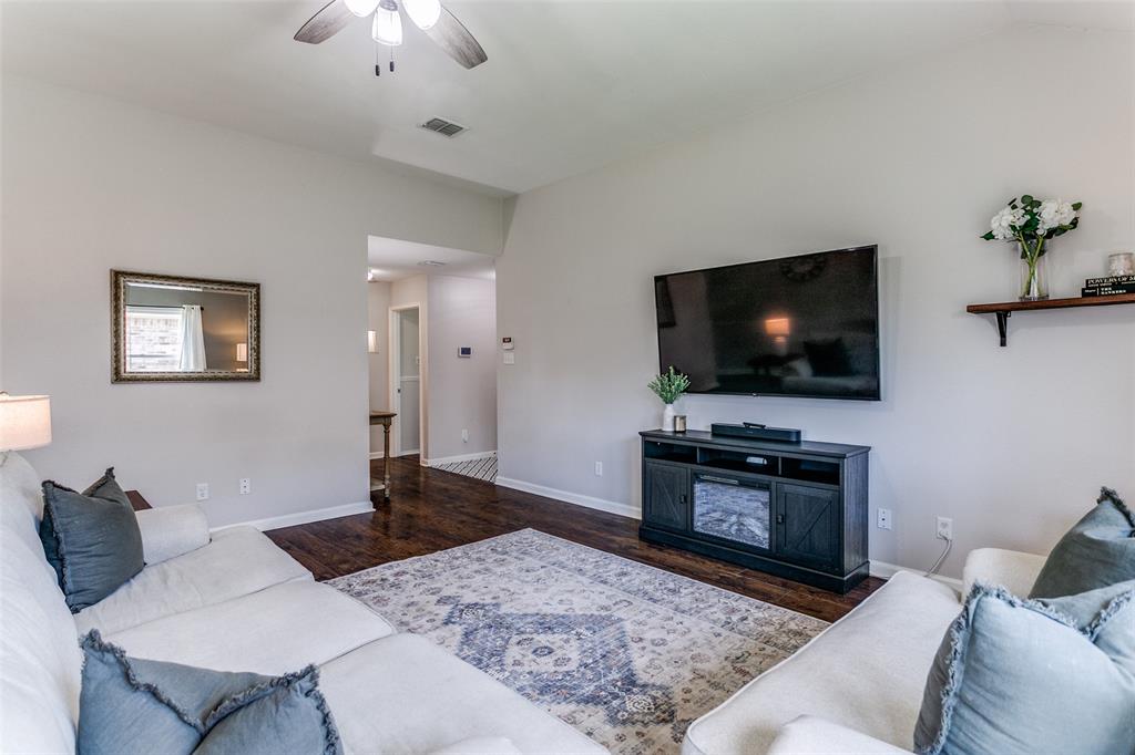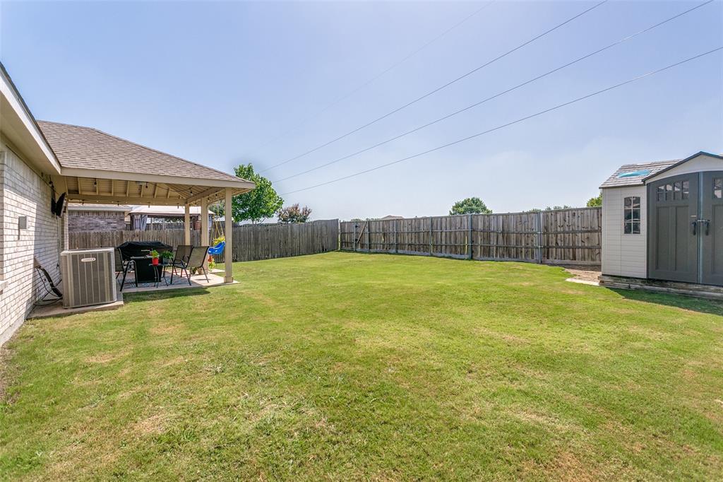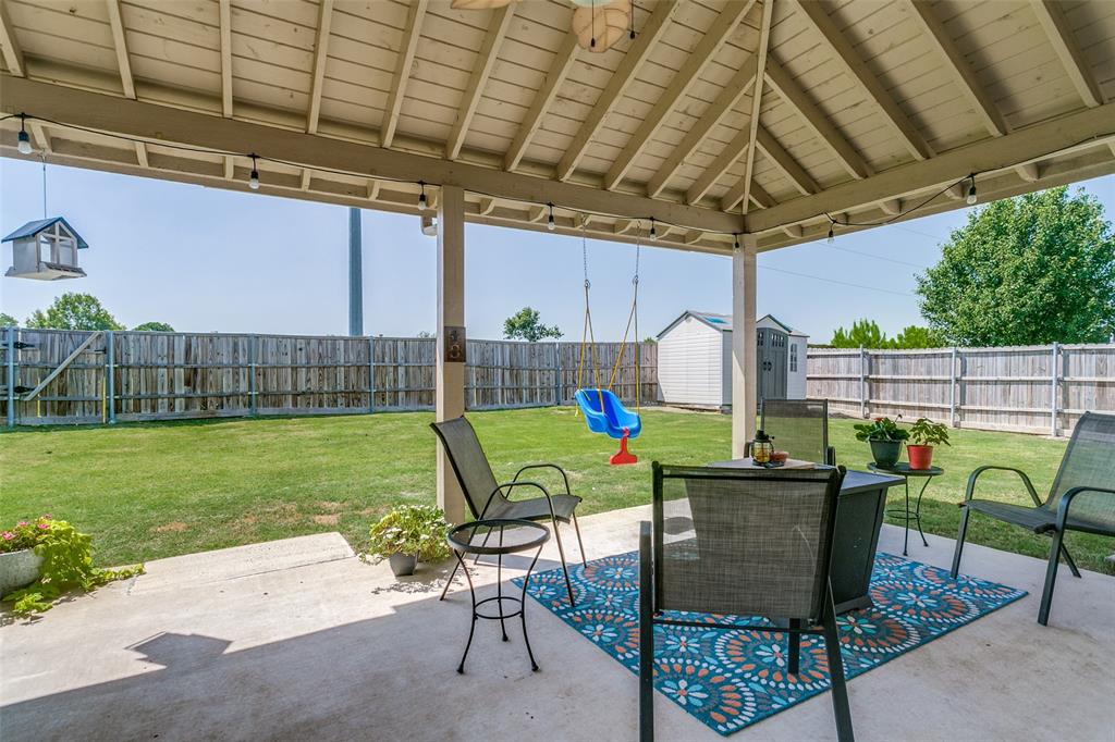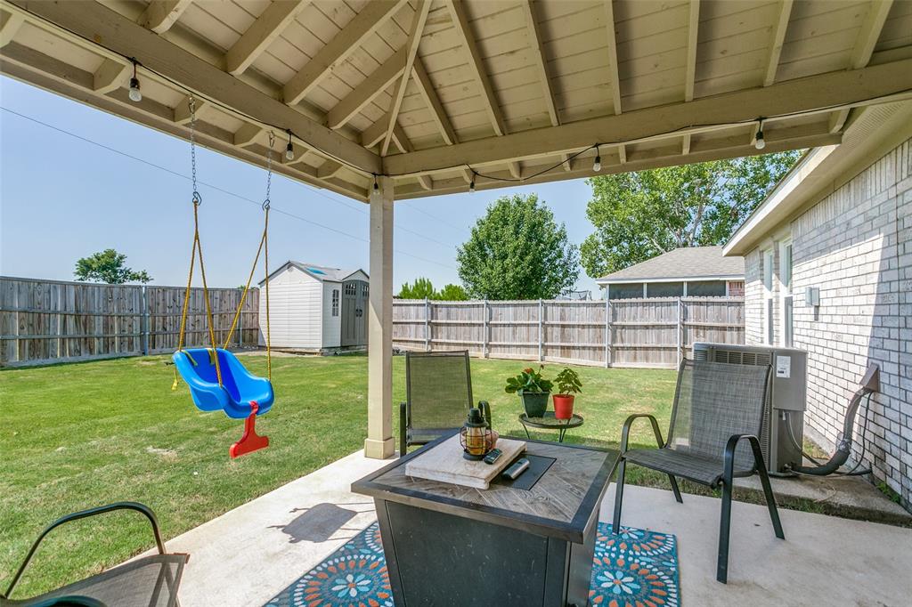 The extended covered patio is the BEST! It’s like an outdoor living room, complete with ceiling fan, TV mount, and a bonus storage shed. Perfect for Texas evenings, cook outs, and game days.
