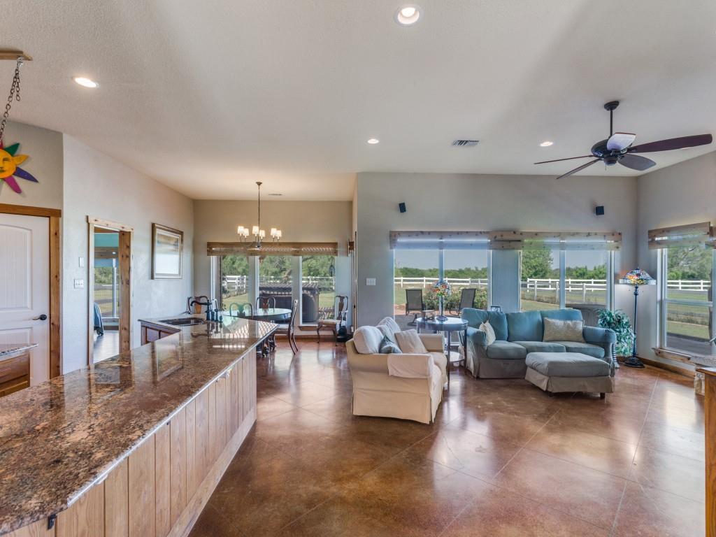 Located in White Bluff Resorts at Lake Whitney, this ranch-style home offers 3 bedrooms, 2 baths, an open living area, split floor plan, large master suite, walk-in closets, and a spacious back patio with hot tub and pergola sitting on 4.97 acres. Gorgeous kitchen has granite counter tops and induction range. Property is fenced and cross fenced. Community amenities include two golf courses, four pools, restaurants, tennis and pickleball courts, parks, marina, conference center, and guest lodging. Ideal as a vacation home or permanent residence, it's just 1.5 hours from DFW and Waco.