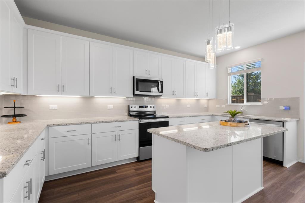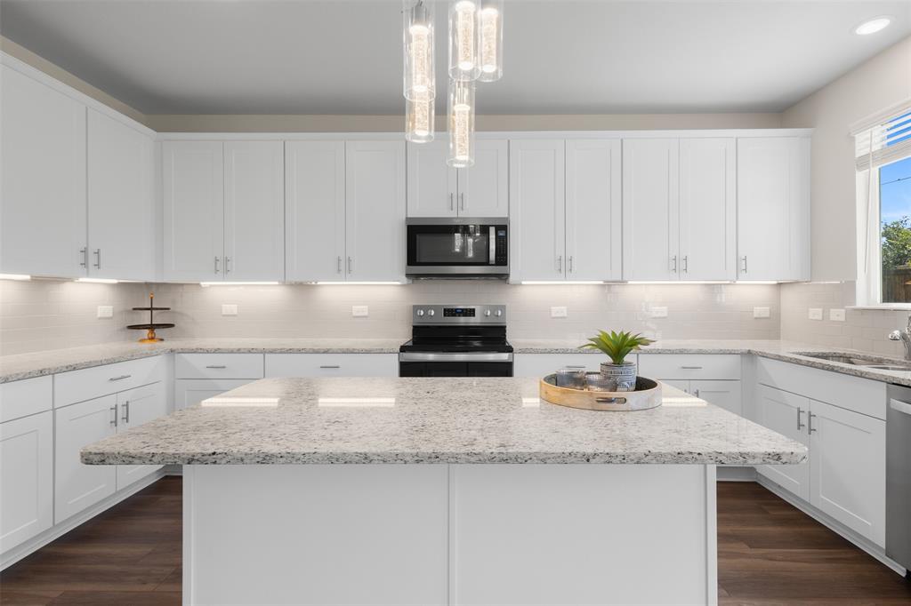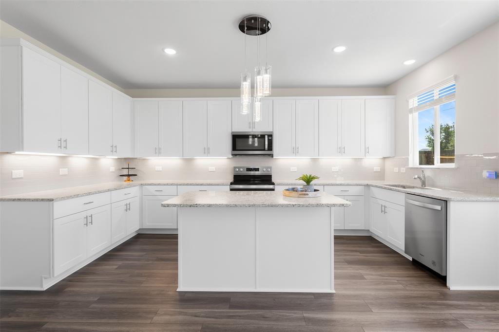 At the heart of the home, the gourmet kitchen is a chef’s dream, featuring upgraded 36” cabinets, ample counter space, and a layout that encourages family gatherings and effortless entertaining.