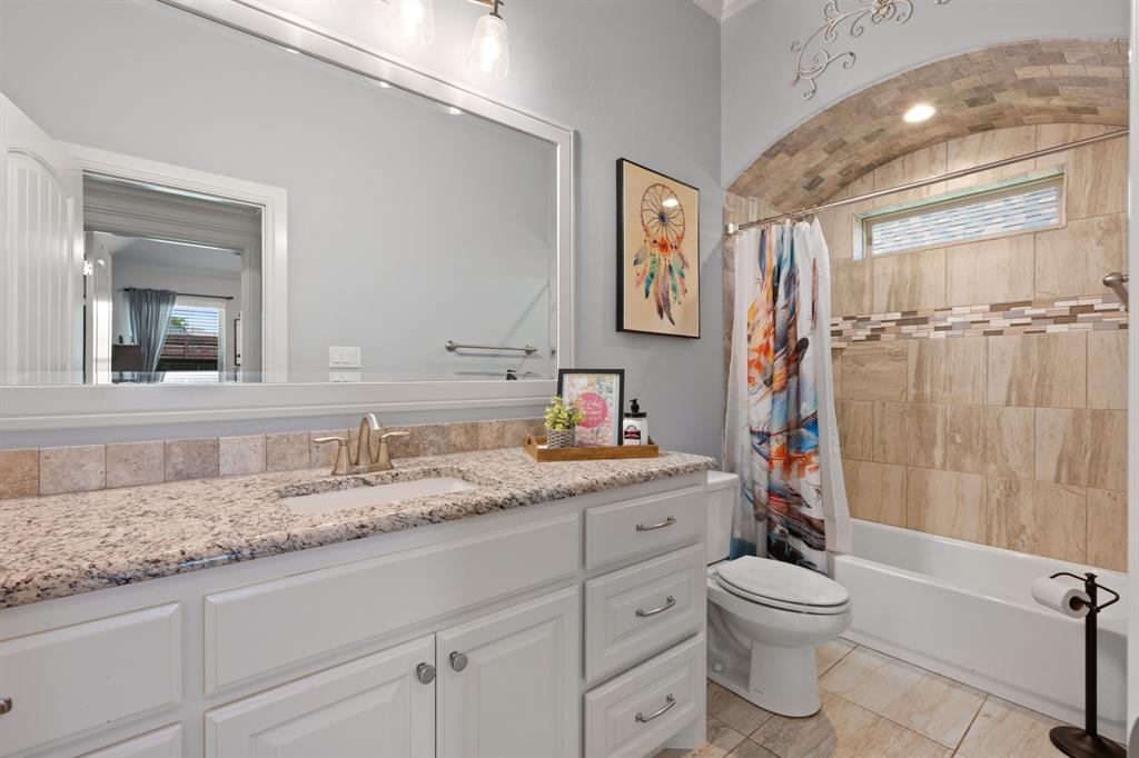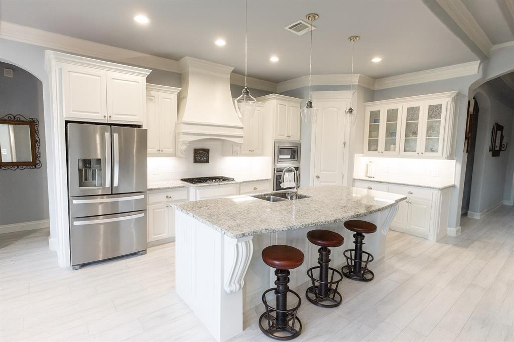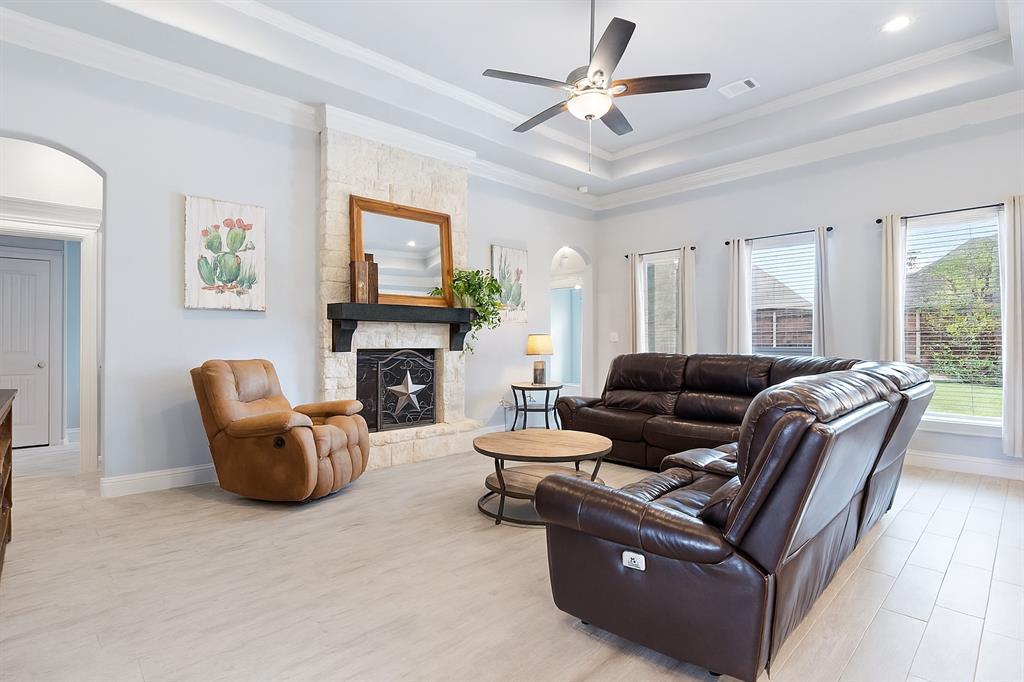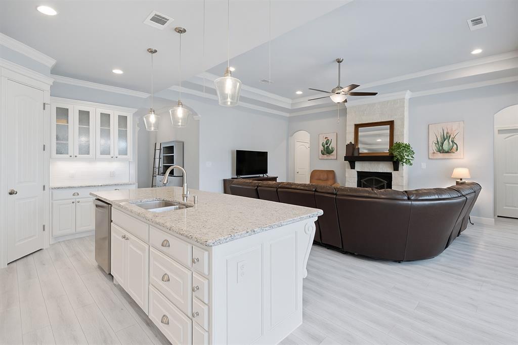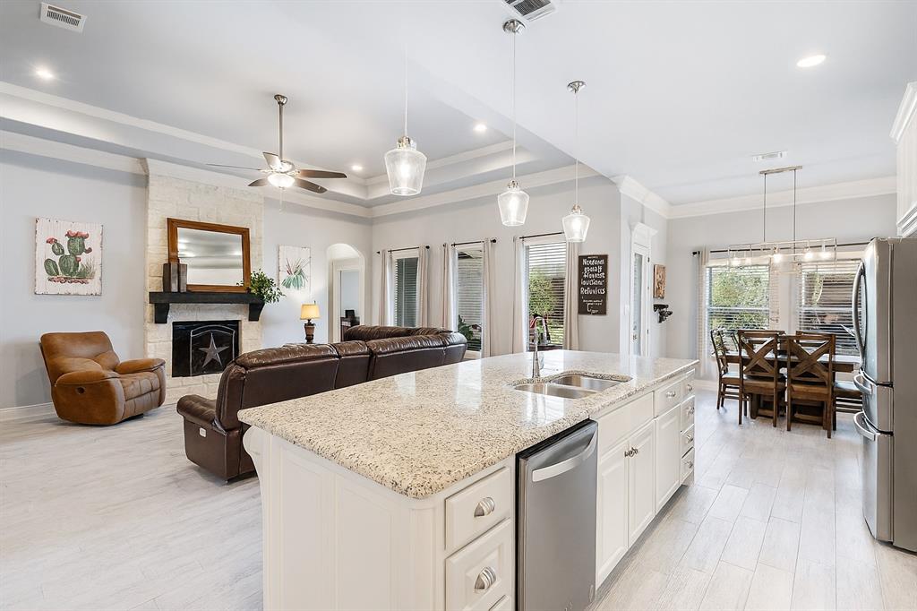 OFFERING $5000 SELLER CONCESSIONS. This exquisite four bedroom three bath Al Couto home boasts extraordinary architectural design and exceptional craftsmanship. The stunning wrought iron front door leads you to the expansive open living area featuring a tray ceiling, easy care tile , flooring, stone gas fireplace and an abundance of sunlight. The kitchen is a chef's dream with a five burner gas cooktop, stainless steel appliances, expansive island, granite counters and dining area with a designer light fixture. The tranquil primary suite includes an ensuite with garden tub, walk in shower, separate vanities and a massive master closet. The three additional bedrooms are spacious with large closets, carpeting, ceiling fans and features split bedrooms. The two additional baths have striking curved tiled arches and spacious granite vanities. The utility room is oversized with a sink and extra storage. The back patio has been expanded to accommodate those friends and family gatherings. The perimeter of the backyard has semi-private fencing. The roof was replaced in June 2023. The Harbor Lakes community offers a clubhouse with dining, golf and a future Pickleball court for additional fees. The subdivision includes a community boat ramp. Harbor Lakes Plantation is gated for privacy. Don't miss out on this one!