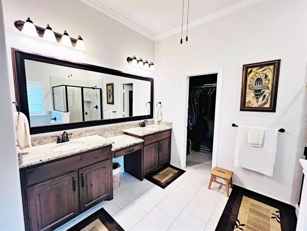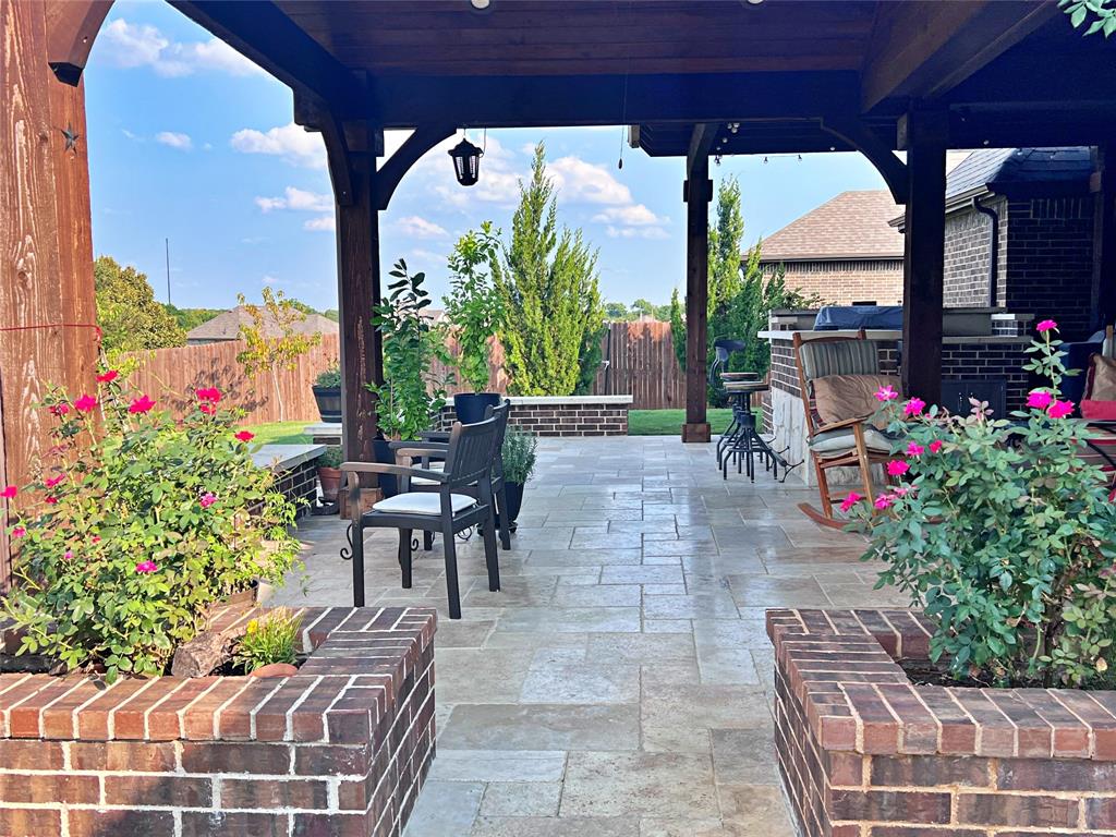 Step outside to an expansive, fully fenced yard featuring an extended covered patio and built-in outdoor grill—ideal for entertaining or simply relaxing in nature. Both front and backyard patios are paved with travertine. Beyond the fence is access to walking trails and green spaces that wind through the neighborhood like your own nature park. Located within the highly desirable Midlothian ISD, offering prime access to top-rated schools!