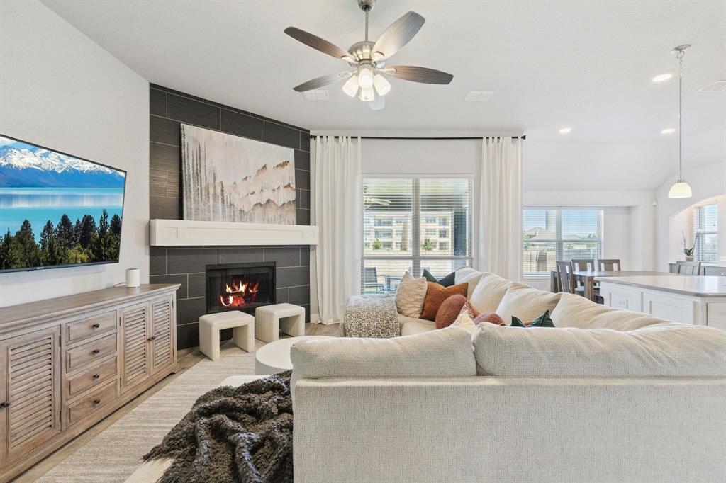 Welcome to 1620 Irene Drive, a thoughtfully designed Bloomfield home built in 2018 that offers comfort, style, and an abundance of upgrades across 3,285 square feet. With 4 spacious bedrooms and 3 full baths, this home delivers an open-concept layout ideal for modern living and effortless entertaining. New roof being installed. Wood-look tile flooring flows throughout the main living spaces, setting a warm and durable foundation for daily life. At the heart of the home, the deluxe kitchen impresses with quartz countertops, custom cabinetry, a farmhouse sink, and double ovens—all complemented by a stylish subway tile backsplash. The adjacent dining and living areas are anchored by a striking fireplace with floor-to-ceiling tile surround, creating a cozy yet elegant focal point. Ceiling fans in every room enhance comfort, while upgraded carpeting adds a soft touch to the private spaces. Retreat to the primary suite, complete with a walk-in closet, dual sinks, a garden tub, and a separate tiled shower—designed to offer a relaxing escape. Secondary bedrooms are generously sized and well-positioned for privacy. The extended covered patio in back offers a peaceful place to unwind or entertain, framed by a fully landscaped yard with stone border flower beds and mature tree accents. Additional highlights include an 8-foot mahogany front door with decorative glass and ironwork, faux wood blinds, pre-wired TV wall mounts, and upgraded finishes throughout. Located near top-rated schools, retail, dining, and convenient access to major highways and the Chisholm Trail Parkway, this home blends location and livability with refined details and everyday ease.