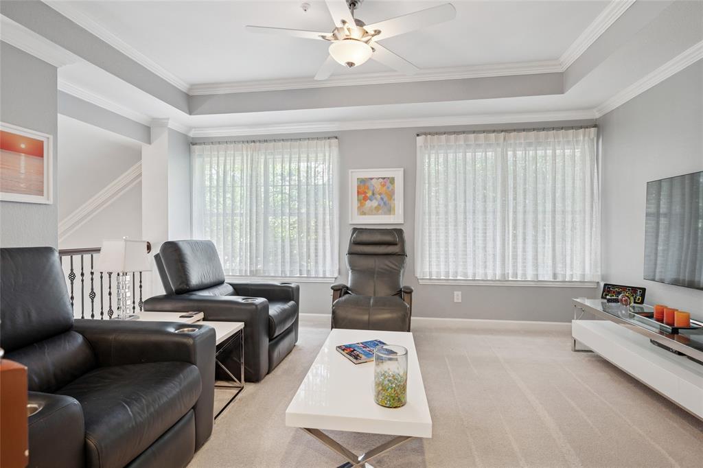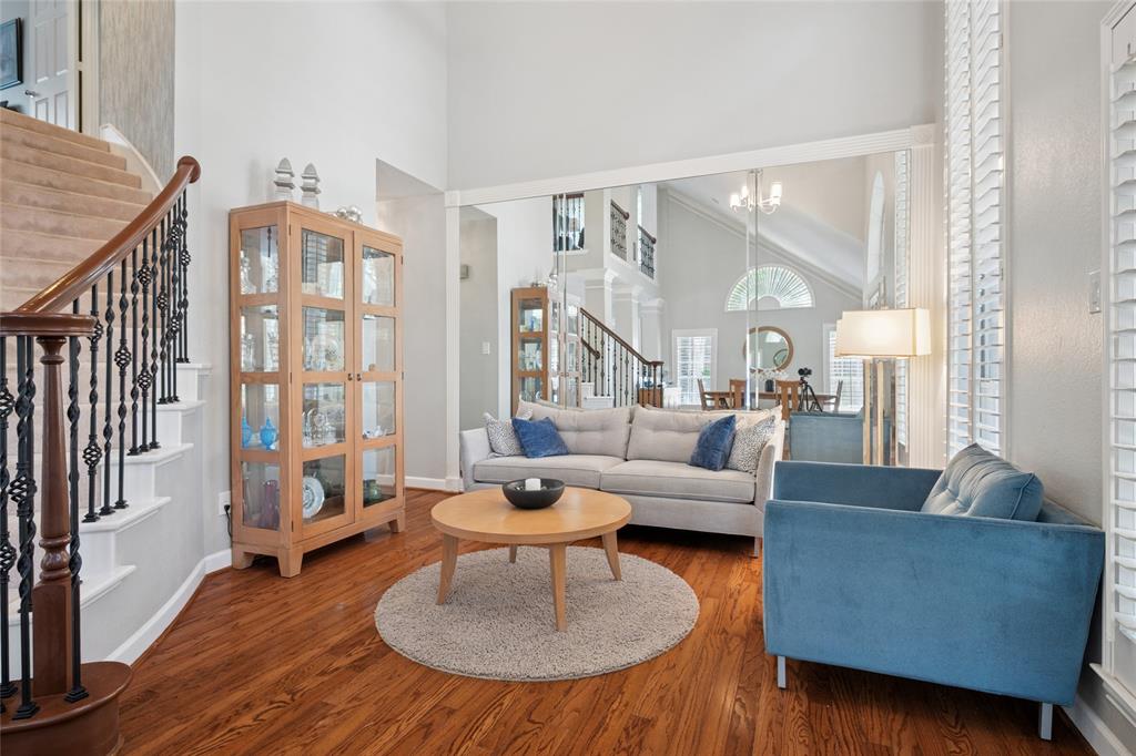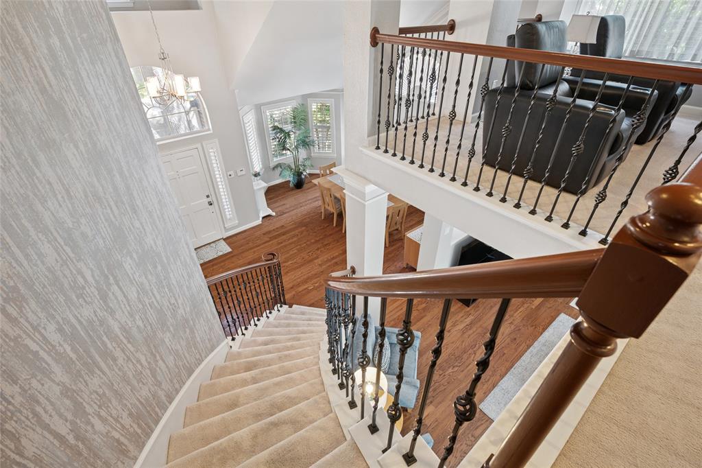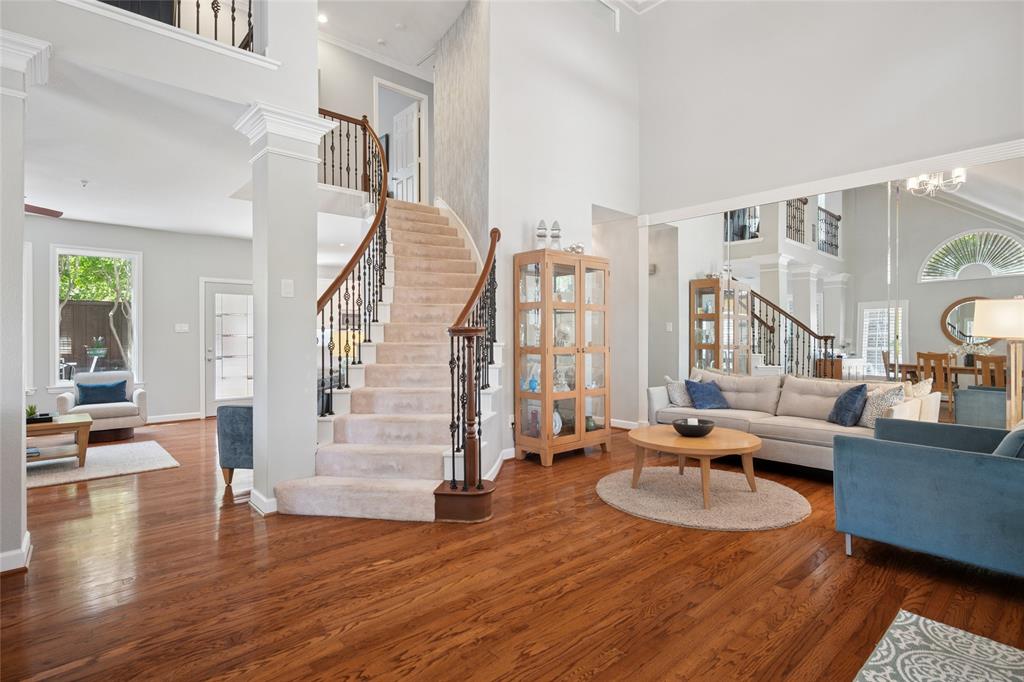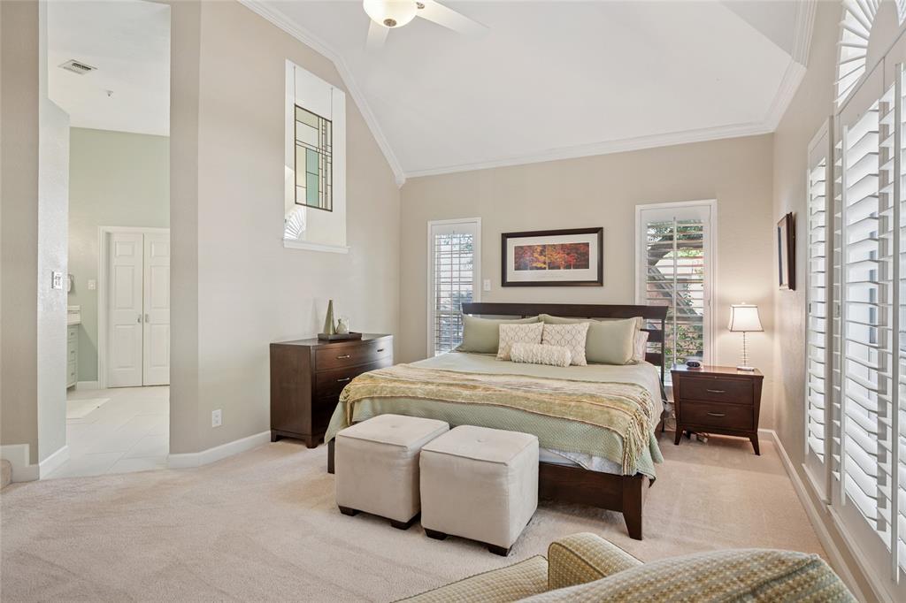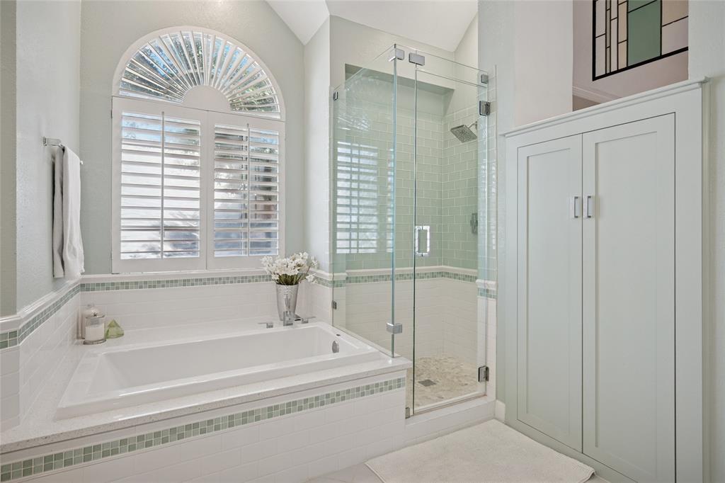 The elegantly curved staircase leads to 2nd floor where the spacious loft becomes another living area, perfect for home office or a private workout space. Retreat-like primary bedroom is generously sized and secluded. The primary bathroom offers calm with a jetted tub, walk-in shower, and dual sinks. The well sized primary closet will not disappoint! Two additional bedrooms access the remodeled guest bath with a large walk in shower, modern fixtures and beautiful finishes.