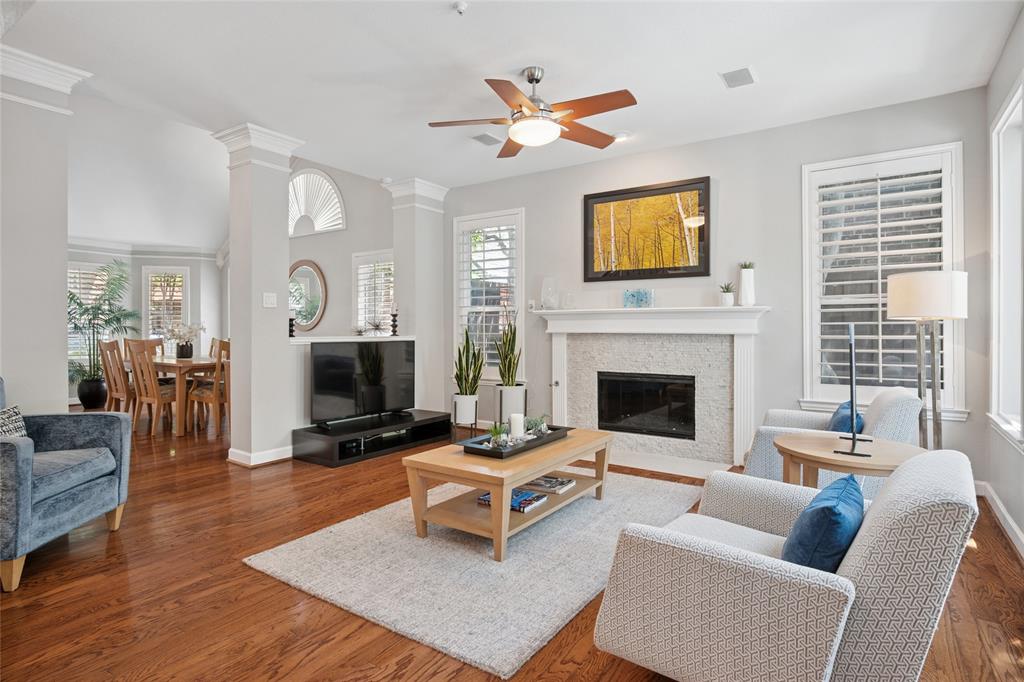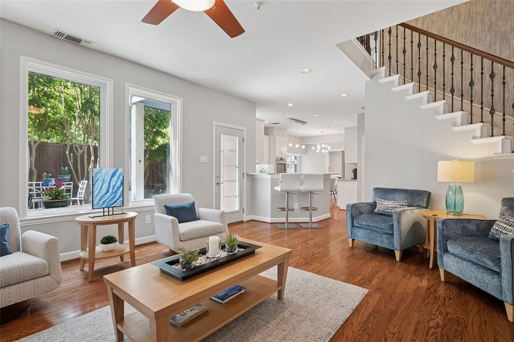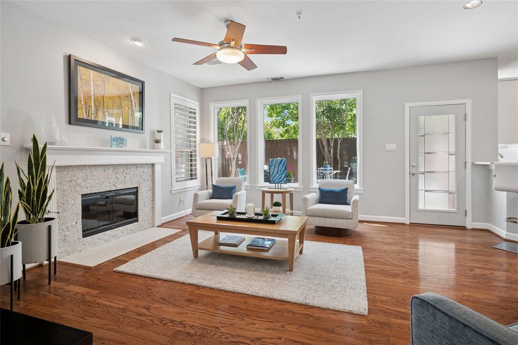 Light filled Grand Addison home anchors a tree-lined cul-de-sac. This private 3 bedroom, 2.5 bath home also offers 3 living spaces and many hidden extras. Downstairs you'll find elegant engineered wood floors, modern tiled gas fireplace, custom glass patio door and upgraded casement windows viewing the park like backyard space.