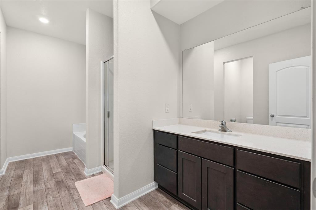 Beautiful 5 BEDROOM HOME NEXT TO A GREENBELT! Fall in love with this warm & inviting floor plan graced with luxury plank floors, recessed lighting, oversized bedrooms & neutral colors. Cooking is a breeze in the gourmet kitchen boasting granite countertops, an undermount sink, a breakfast bar & a pantry. Unwind in the huge living room, or entertain family & friends in the large upstairs game room. End your day in the secluded primary suite showcasing quartz vanities, a soaking tub, a separate shower, linen closet & spacious walk-in closet. Enjoy the outdoors in your backyard offering privacy as well as tons of room to play. Great location close to Elementary School & William Houston Memorial Park with easy access to lots of shopping, dining & downtown Fort Worth.