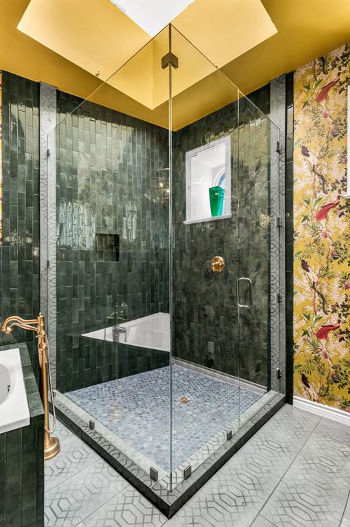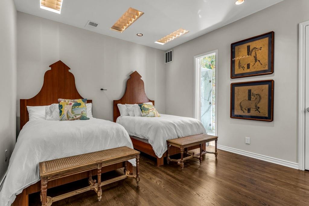 Beautiful West Highland Park Stunner! This home has thoughtfully designed & updated! Two story home presents a versatile floor plan with two inviting living areas and separate dining room with soaring ceiling and French brown hand laid wood floors, perfect for both entertaining and relaxing. The large great room has built in bookshelves, floor to ceiling patio doors that lead out to turfed courtyard yard. Beautiful kitchen overlooks the side yard equipped with stainless steel appliances. The home has two spacious bedrooms each with walk-in closets, including a private primary retreat with separate jacuzzi tub and walk in shower, the primary suite also has beautiful fireplace. The 2nd bedroom has an ensuite bath with custom vanity and lighting. Additional features include a newly added dumbwaiter, custom drapes, custom wallpaper, beautiful light fixtures throughout, two car garage, upstairs dry bar, and private side yard. The home truly a must see!
