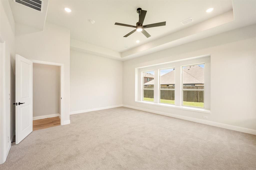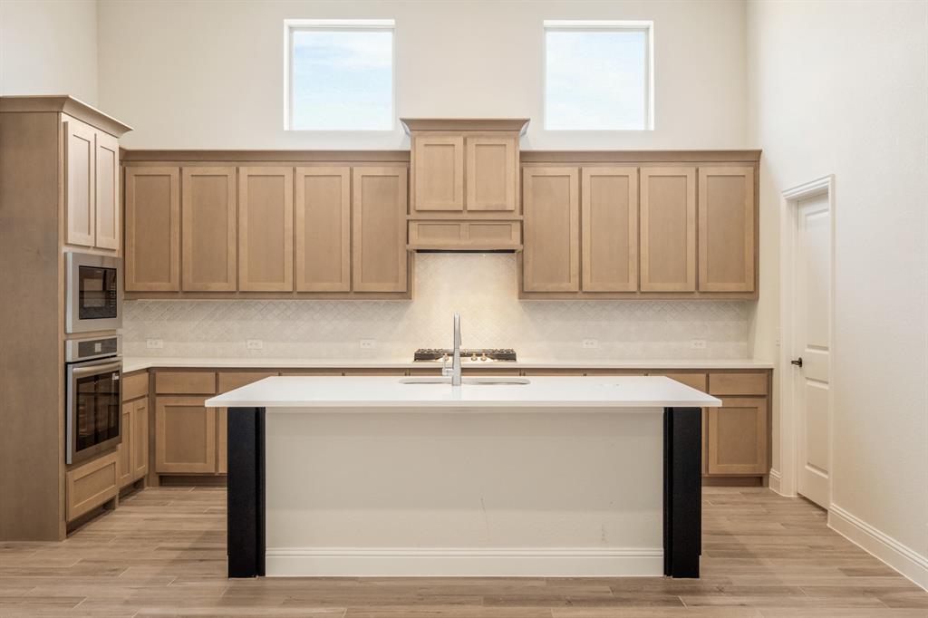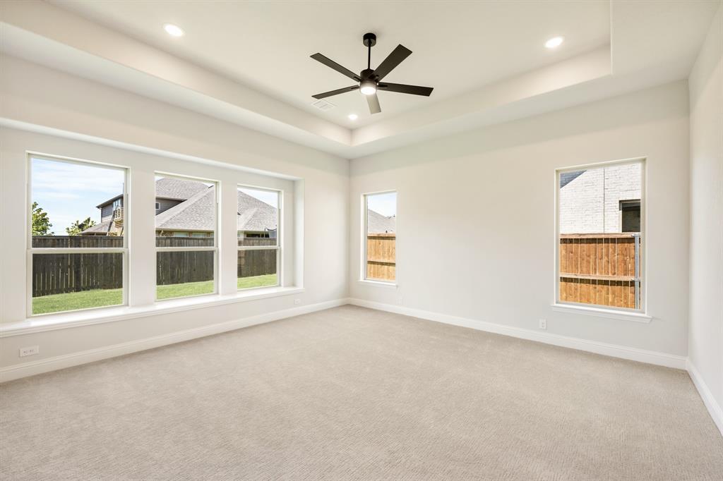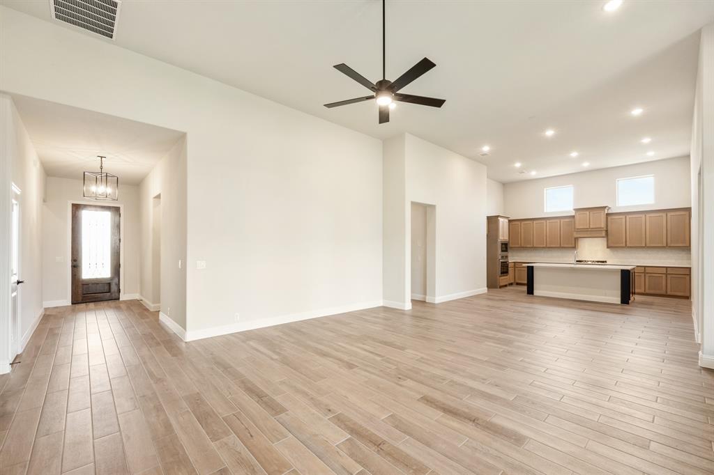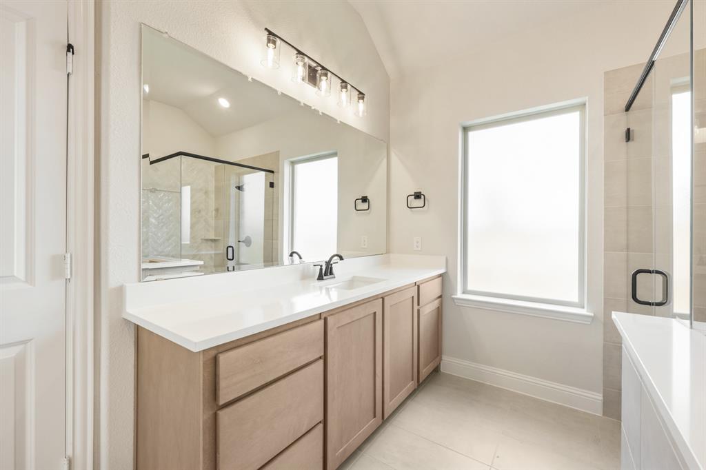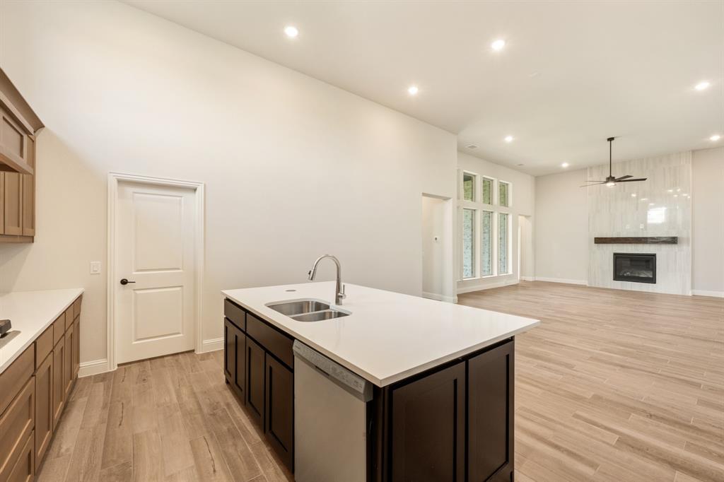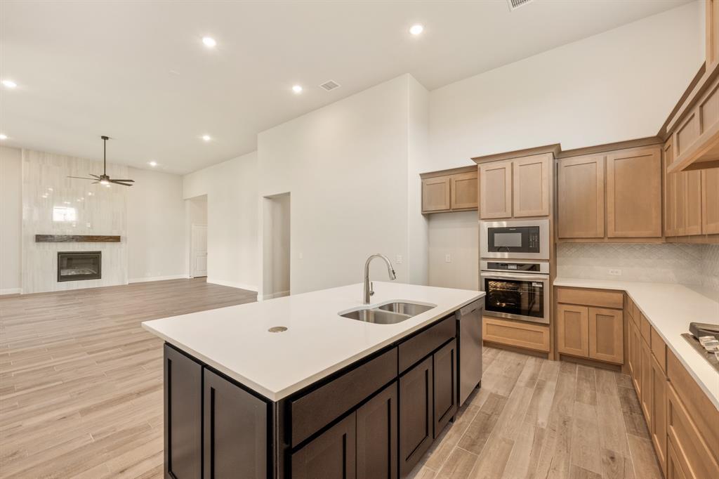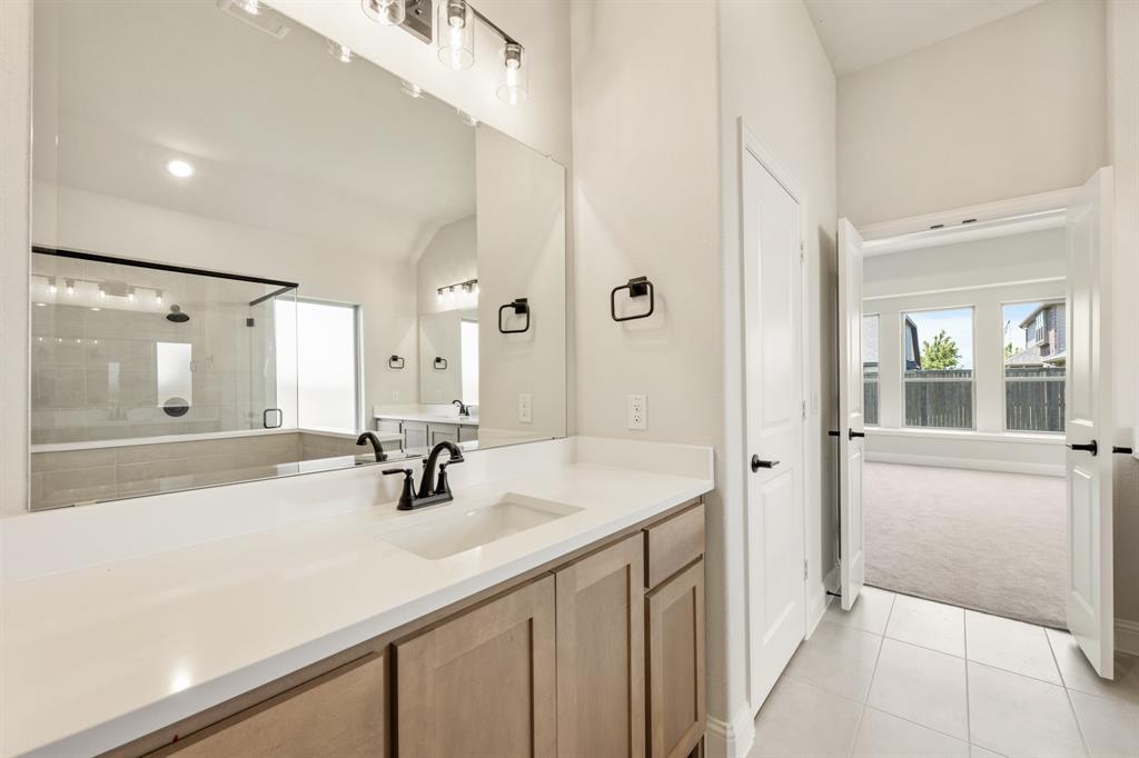 *$20K to use towards closing cost, rate buydown or off price!* NEW! NEVER LIVED IN. Prototype Daffodil plan by Bloomfield Homes in Mansfield’s Somerset community. This one-of-a-kind single-story home offers 5 bedrooms, 4.5 baths, and a 3-car garage. As a prototype, the plan has been customized to include a full In-Law Suite—ideal for multigenerational living. The home features 13-foot ceilings, upgraded patterned carpet in bedrooms, and wood-look tile flooring throughout the main areas. Windows sit above the huge Deluxe Kitchen, where quartz countertops, painted cabinets, built-in gas appliances, and an upgraded backsplash give polish and value. Additional interior upgrades include 8’ custom front door, quartz countertops, a tile fireplace floor-to-ceiling, and upgraded tile selections. Primary Suite features a garden tub, walk-in shower, and two individual vanities. Jack-and-Jill bath setup provides convenience for the secondary bedrooms. Oversized covered patio great for entertaining sits in the back with a gas drop to simply connect a grill. Cedar garage doors on two garage bays, brick front porch, full gutters, blinds, and fully landscaped homesite. Rare opportunity to own a prototype floor plan with premium finishes in a highly sought-after Mansfield neighborhood - drop in to Bloomfield's model in Somerset to take a tour!