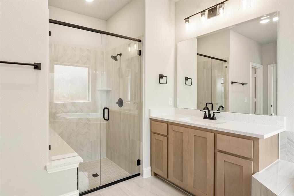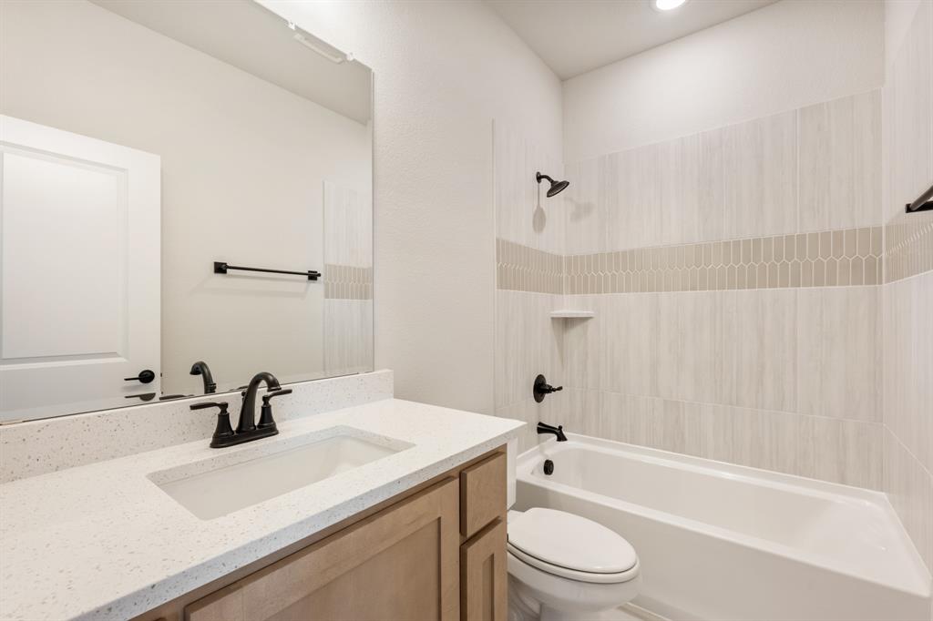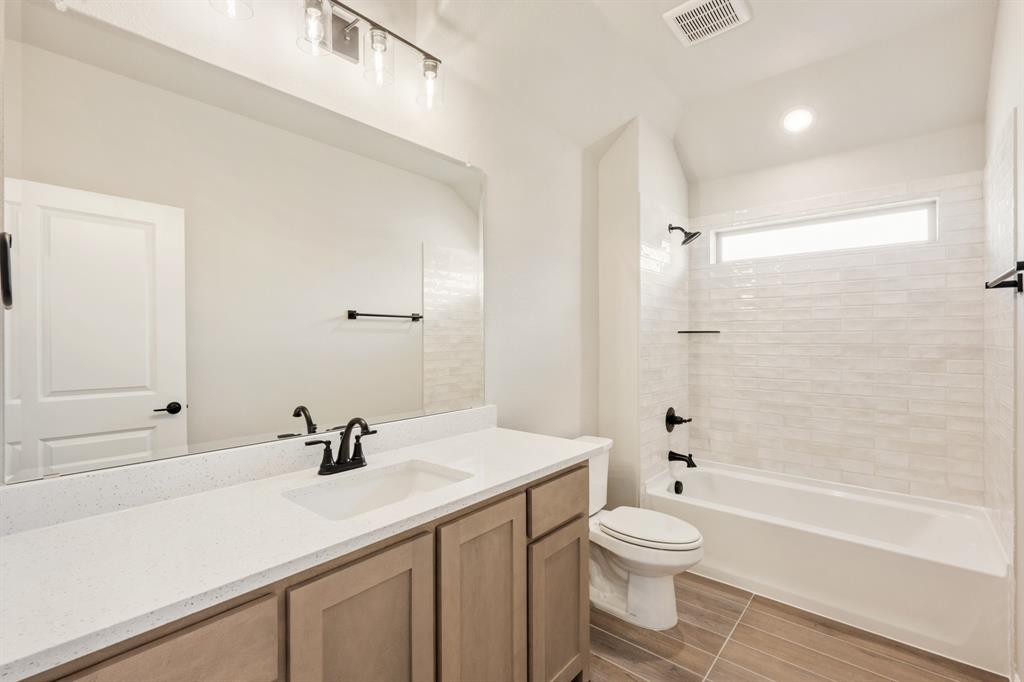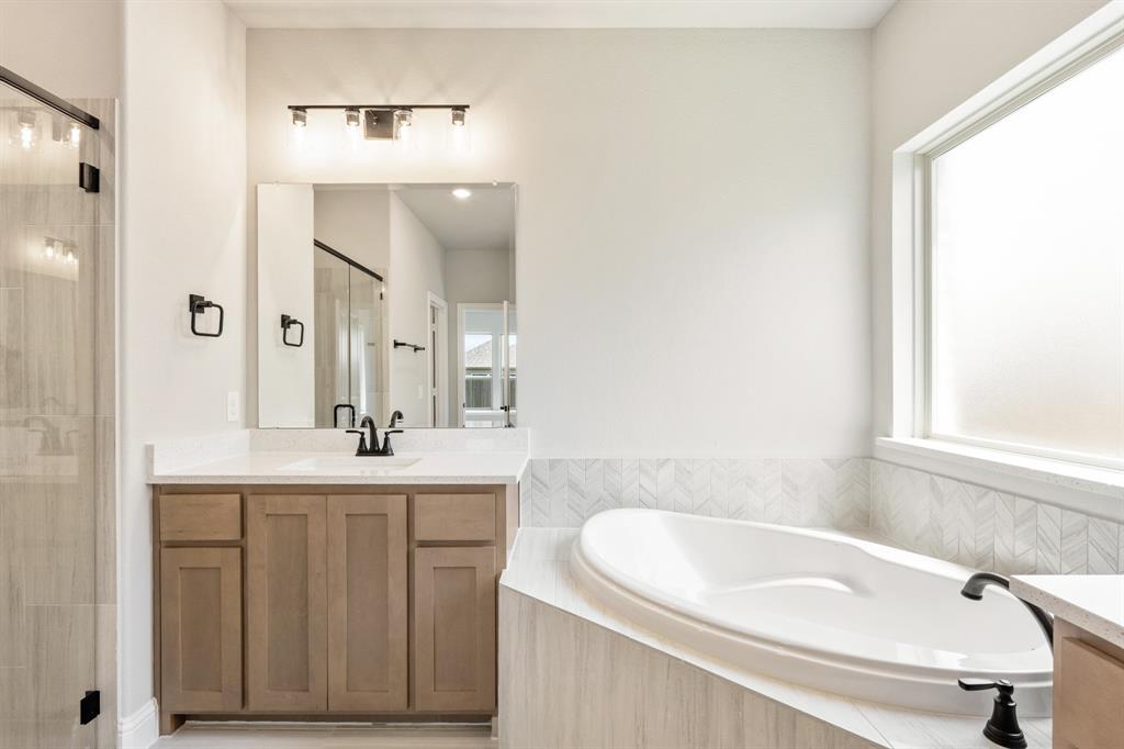 *$20K to use towards closing cost, rate buydown or off price!* BRAND NEW! NEVER LIVED IN BEFORE! The Lily IV prototype by Bloomfield Homes offers 5 bedrooms, 4.5 baths, a study, media room, game room, and 3-car split garage—all within a spacious two-story layout with over 4,200 square feet! Located on an oversized 70x130 lot, this thoughtfully designed home delivers versatile spaces and premium finishes ideal for modern family living. This home features 2 bedrooms downstairs, including a private primary suite with luxury bath (garden tub, bench seat shower, and large individual vanities) and walk-in closet. Upstairs holds 3 additional bedrooms - including an In-Law Suite - game room, and a wide media room. There's a huge utility room with built-in shelving downstairs, engineered hardwood flooring flows throughout the main living areas and study, high ceilings for a grand feel, blinds included, and elegant quartz tops. The Deluxe Kitchen has tons of space! California island, painted cabinets, built-in bench seat at breakfast nook, massive walk-in pantry, and gas cooking on built-in stainless steel appliances. Additional upgrades include Level 4 patterned carpet, upgraded bath and utility tile, and a contemporary tile-to-ceiling fireplace at the center of the Family Room. Tall ceilings and large windows create bright, open spaces! Exterior details include cedar garage doors, brick front porch, covered back patio, and full gutters. Luxury, flexibility, and value all in one move-in ready home.