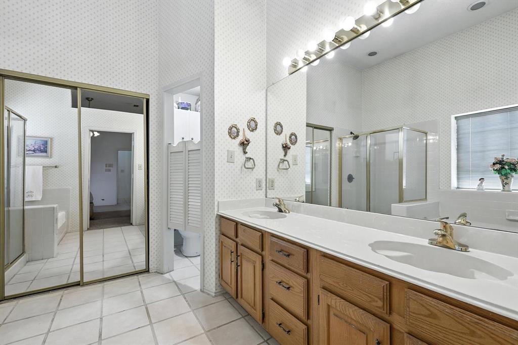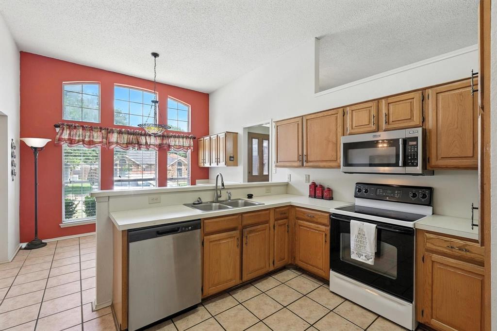 Welcome home! This well maintained and inviting home in a quiet, established neighborhood offers the curb appeal and functional layout you've been looking for. The large living area offers natural light, high ceilings, and a cozy two-sided brick fireplace. The kitchen is open and functional with ample cabinetry, tile flooring, a breakfast bar, and a bright breakfast nook framed by large picture windows. A separate dining area and second living space provide flexibility for entertaining or everyday comfort. The spacious primary suite features a fireplace, dual vanities, soaking tub, separate shower, and generous closet space. Two additional bedrooms provide flexibility for family, guests, or a home office. Enjoy the outdoors year-round on the covered back patio with built-in seating, overlooking a private, fenced backyard — perfect for relaxing or hosting guests. This move-in ready home combines timeless charm with modern functionality and is conveniently located near schools, parks, shopping, and dining. Don’t miss your chance to call this gem your home!