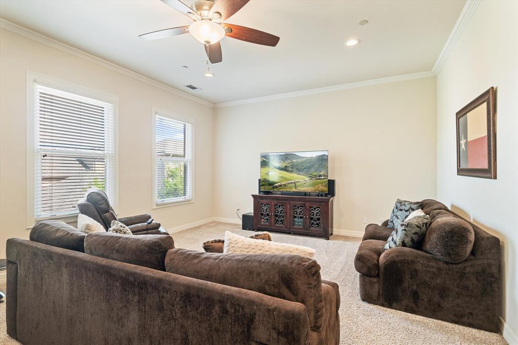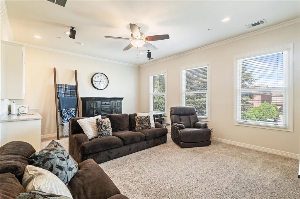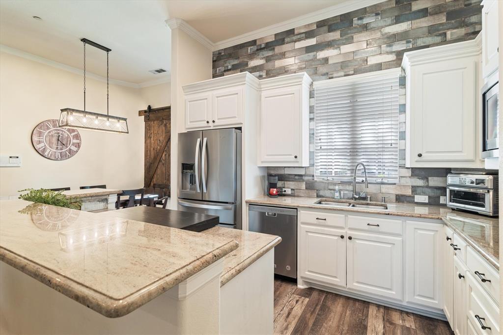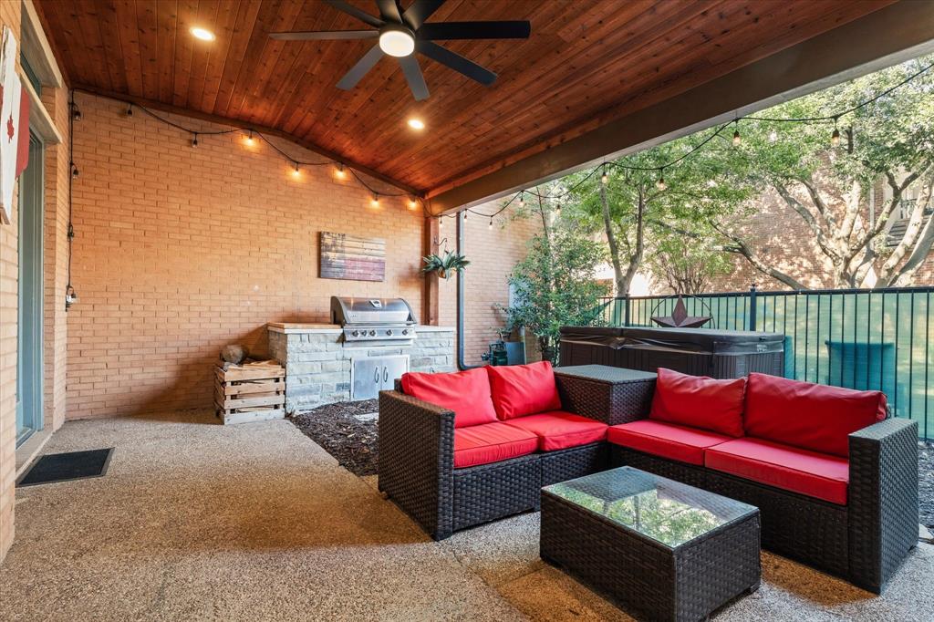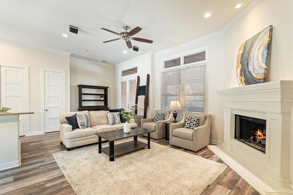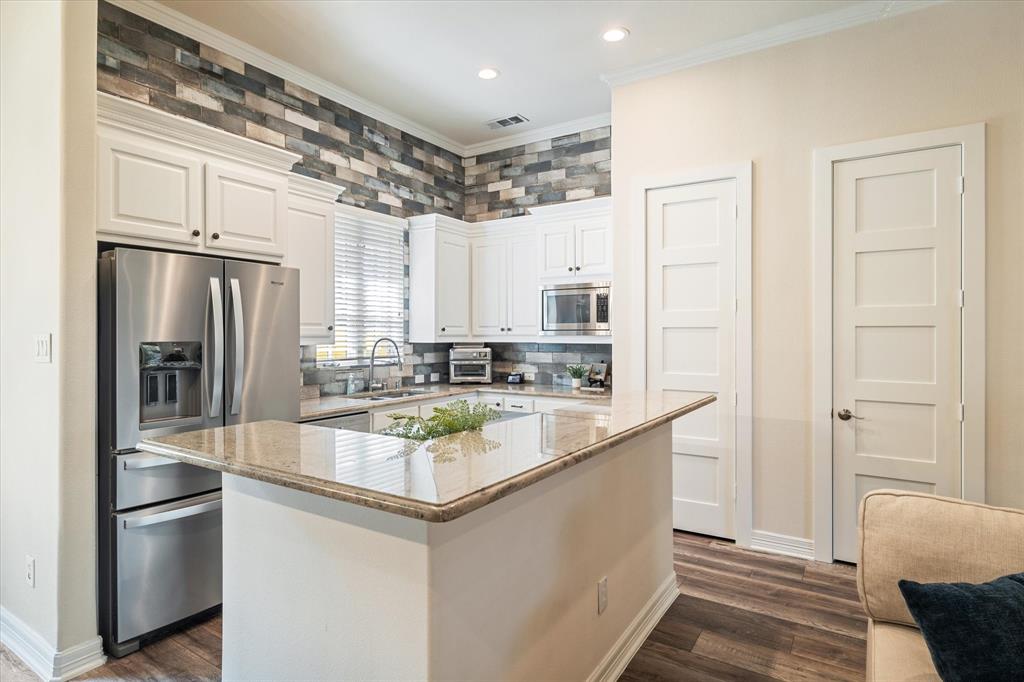 Welcome to this expansive and beautifully designed 3-level townhome offering 5 bedrooms, 4.5 bathrooms, and a prime location just minutes from vibrant downtown FRISCO. Ideal for families or entertainers, this residence combines modern comfort with spacious living in one of Frisco’s most sought-after communities. Step inside to discover bright, open concept living spaces with high ceilings, large windows, and refined finishes throughout. The main level features wood floors throughout, a chef-inspired kitchen with premium appliances, ample cabinetry, and a large center island that flows seamlessly into the generous dining and living areas. Also on the first floor is an executive study with French doors. Retreat to the luxurious and spacious primary suite on the second level, complete with a spa-style ensuite bath and walk-in closet. With five total bedrooms, including multiple guest or office options, and four and a half baths, there’s plenty of room to accommodate every lifestyle. Each bedroom has it's own private balcony. On the third floor you will find 3 bedrooms and 2 full baths. Enjoy the outdoors on your private covered patio, complete with a built-in grill station and 2 TVs, perfect for weekend cookouts and evening relaxation. Ideally positioned just moments away from Downtown Frisco, experience shops, restaurants & entertainment options. Plus, Toyota Stadium is around the corner. Additionally, there is always something special going on at the Frisco Library. Close to DNT and the new PGA. This turnkey home is being sold with the option of being fully furnished. Garage with epoxy flooring has AC unit.