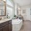 The serene and oversized primary suite includes fresh paint (2024), updated hardwood floors (2024), and a spa-inspired private bath with two walk-in closets, spacious separate vanities, a soaking tub, and a separate shower with bench and product niche. A dedicated home office has also been refreshed with paint and flooring (2024). The mudroom was completely renovated with custom cabinetry, built-ins, and pullouts (2024), and the laundry room features updated paint, a sink, shelving, cabinetry (2025), and lighting (2025).