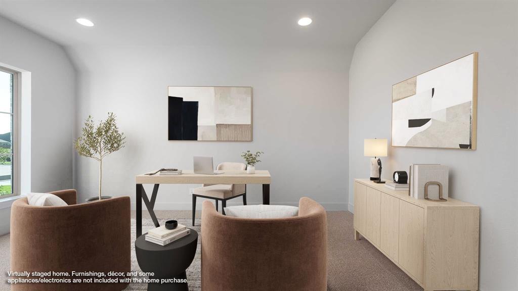 Extended entryway with 12-foot ceilings. Game room with French doors frame the entry. Spacious family room with a wood mantel fireplace and wall of windows. Open kitchen offers an island with built-in seating space, 5-burner gas cooktop and a corner walk-in pantry. Primary suite with a wall of windows. Dual vanities, freestanding tub, separate glass enclosed shower and two walk-in closets in the primary bath. Guest suite just off the extended entry with a full bathroom and walk-in closet. Secondary bedrooms with walk-in closets. Utility room with private access to the primary bathroom. Covered backyard patio. Mud room just off the two-car garage with additional garage bay space.