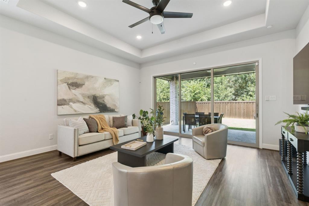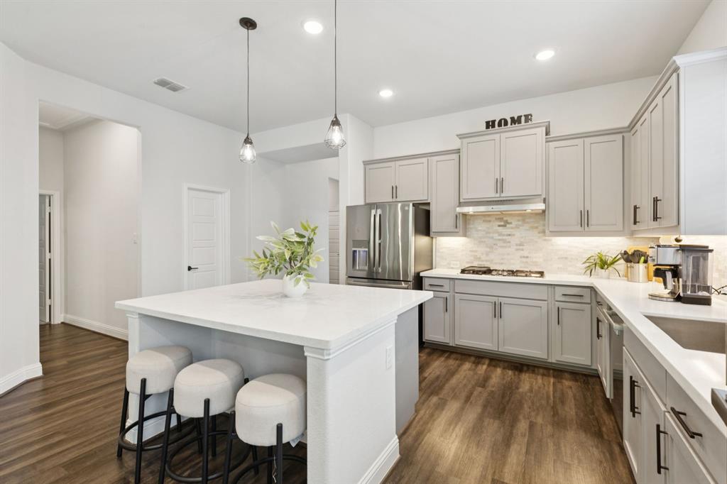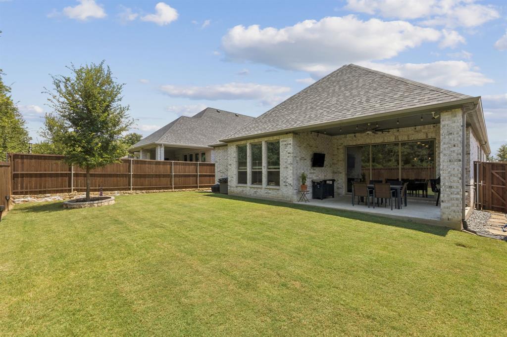 Seller offering $10k concession to buyer with acceptable offer, use for closing costs or rate buy down! A rare and beautifully upgraded single-story gem with a coveted 3-car garage, including a 220V plug for your EV or workshop setup, and so much more! From the moment you enter, you’ll be wowed by the soaring ceilings, expansive layout, and the custom panoramic sliding glass doors that seamlessly connect your living space to the oversized extended covered patio, perfect for indoor-outdoor entertaining or quiet evenings soaking in the sunset. Designed with both functionality and luxury in mind, this home features 3 spacious bedrooms, 3 full bathrooms, and a dedicated office ideal for working from home or creative pursuits. The chef’s kitchen is the heart of the home, featuring abundant counter space, a walk-in pantry, and an open flow to the dining and living areas, all with unobstructed views of your lush, grassy backyard. The primary suite is a true retreat, offering an extended layout, dual walk-in closets, and a spa-inspired bath complete with a soaking tub and separate shower. You'll also love the new roof (less than 1 year old) and the thoughtful details that elevate every corner of this home. All of this is tucked in a vibrant community that offers a resort-style amenity center, pool, fitness facility, and stocked fishing pond, all within walking distance. Plus, you're just minutes from the sparkling shores of Lake Lewisville for weekend fun and relaxation. Don’t miss this rare opportunity to own a one-of-a-kind home, come experience it for yourself!