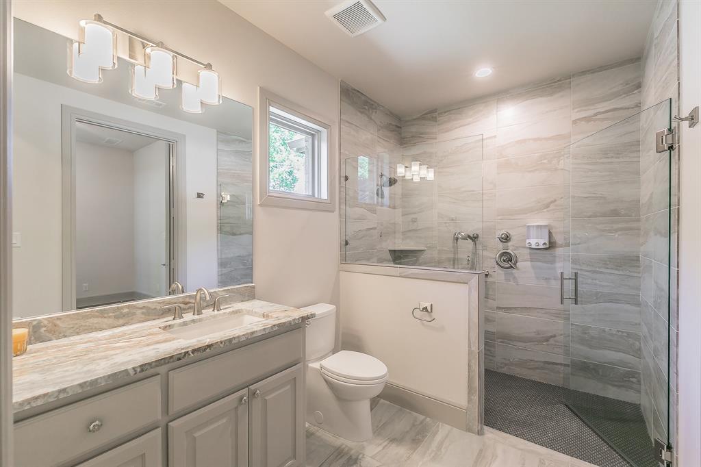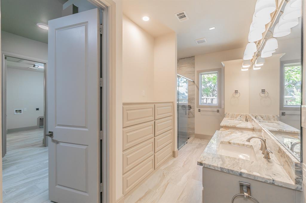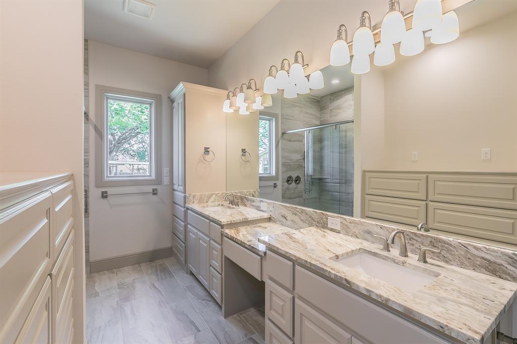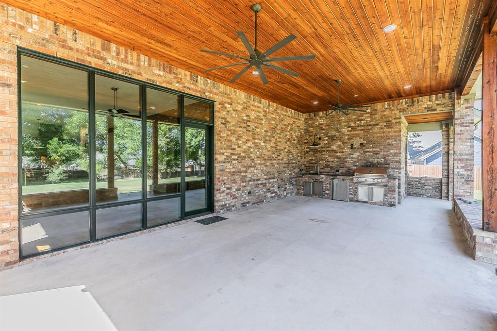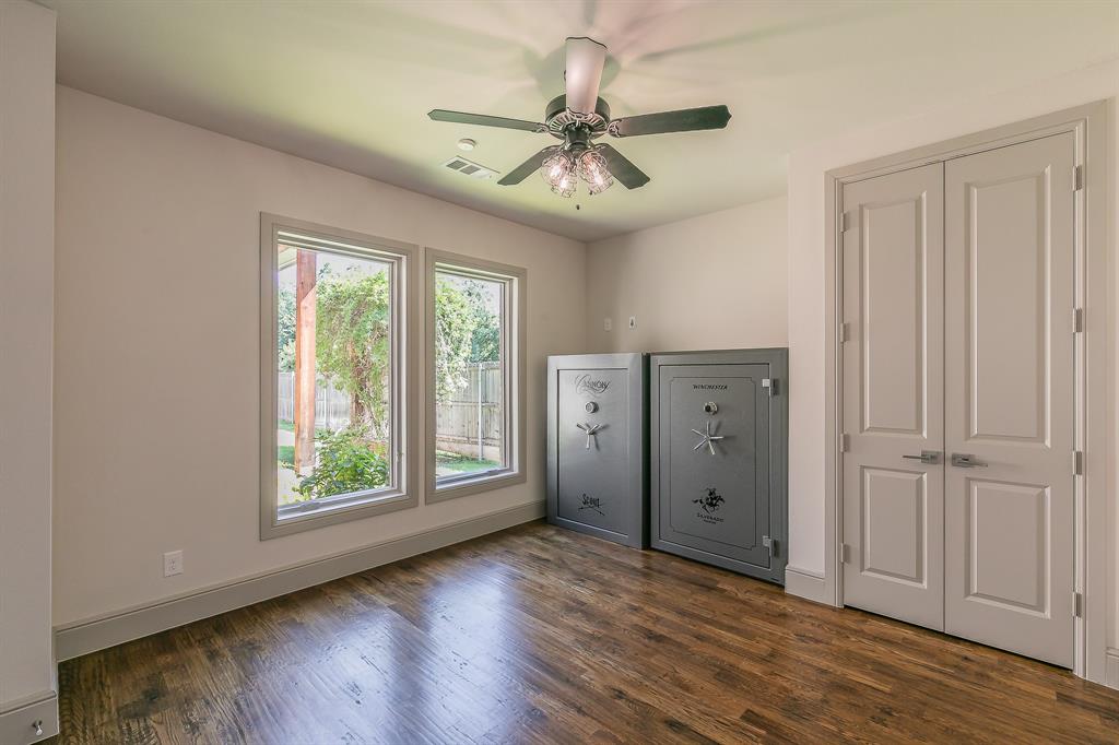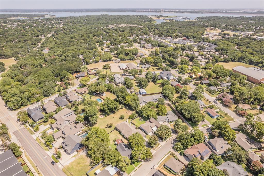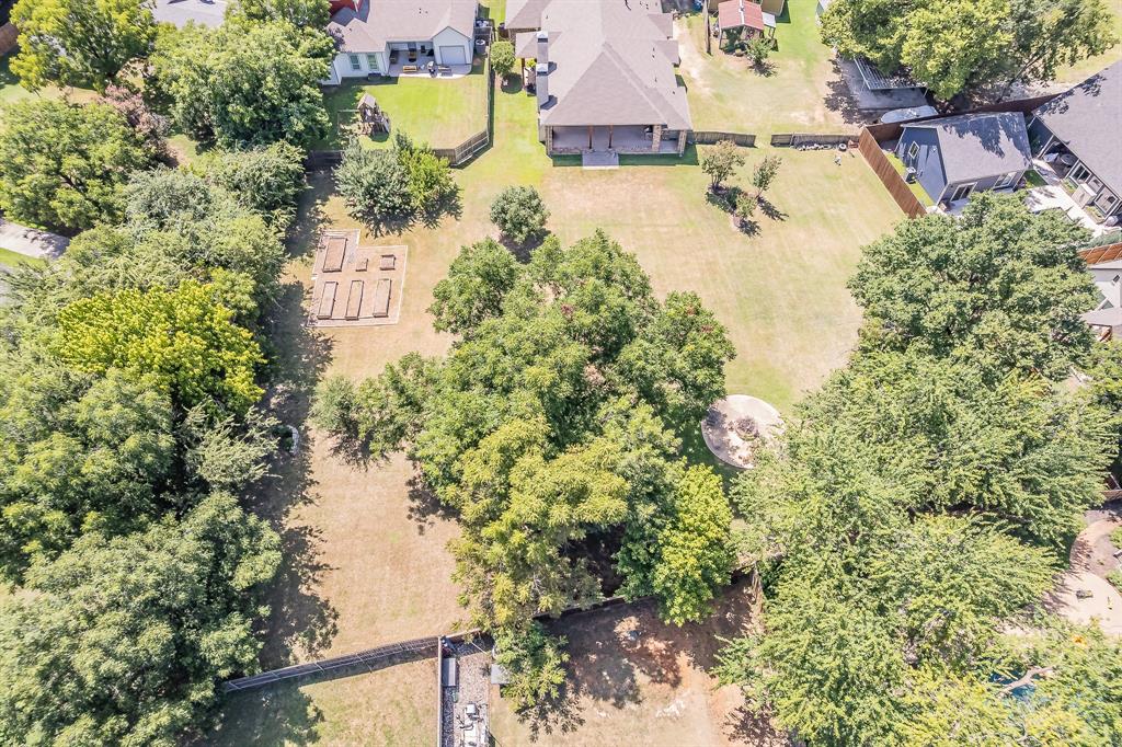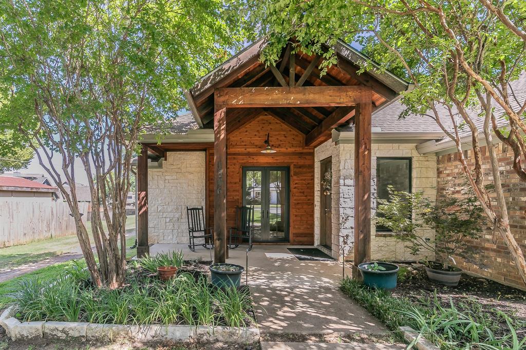 Welcome to this wonderfully custom 2017 home nestled on a tranquil, wooded 0.936-acre lot. Just minutes from the shopping, dining, & vibrant events of Historic Downtown Grapevine. With no HOA restrictions & located outside the historic zone, it provides both freedom & charm in a highly desirable area. The home offers approximately 2,743sqft of interior living space. Rich hardwood floors run throughout the home, complementing the warm tones & custom wood cabinetry found in every room. The open-concept living area features the home’s 2 fireplaces, creating an inviting space for gatherings & relaxation. Off the main living is a dedicated office enclosed by a pair of antique leaded glass doors, with custom built-in drawers & shelving. The heart of the home is the chef’s kitchen, thoughtfully designed with 2 large islands, a built-in refrigerator seamlessly integrated with cabinet fronts, a full-size dishwasher, & 2 additional dishwasher drawers also concealed with cabinetry. The home offers 3 beds & 3 full baths. One secondary bedroom features an ensuite bath with a roll-in shower, providing ADA-friendly accessibility without compromising style. The spacious primary suite includes a luxurious bathroom with a large walk-in shower, space for a freestanding tub, & double vanities. The oversized walk-in closet offers extensive storage & conveniently opens into the utility room containing a Texas Tech-engineered storm shelter. Features an impressive 1,200sqft covered outdoor living area, equipped with a full bath, built-in grill & prep station, & a large stone fireplace. This overlooks a beautifully landscaped backyard complete with raised beds, fruit trees, a fire pit, & plenty of space for entertaining. This home is a rare find, offering timeless design, custom finishes, & a lifestyle that perfectly balances serene living with access to the very best of Grapevine. Don’t miss your opportunity to make this extraordinary property your new home.